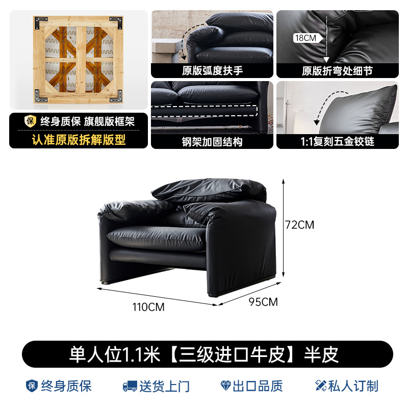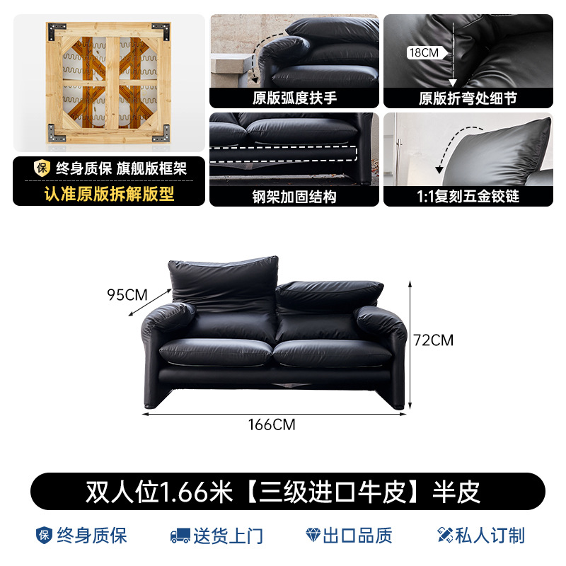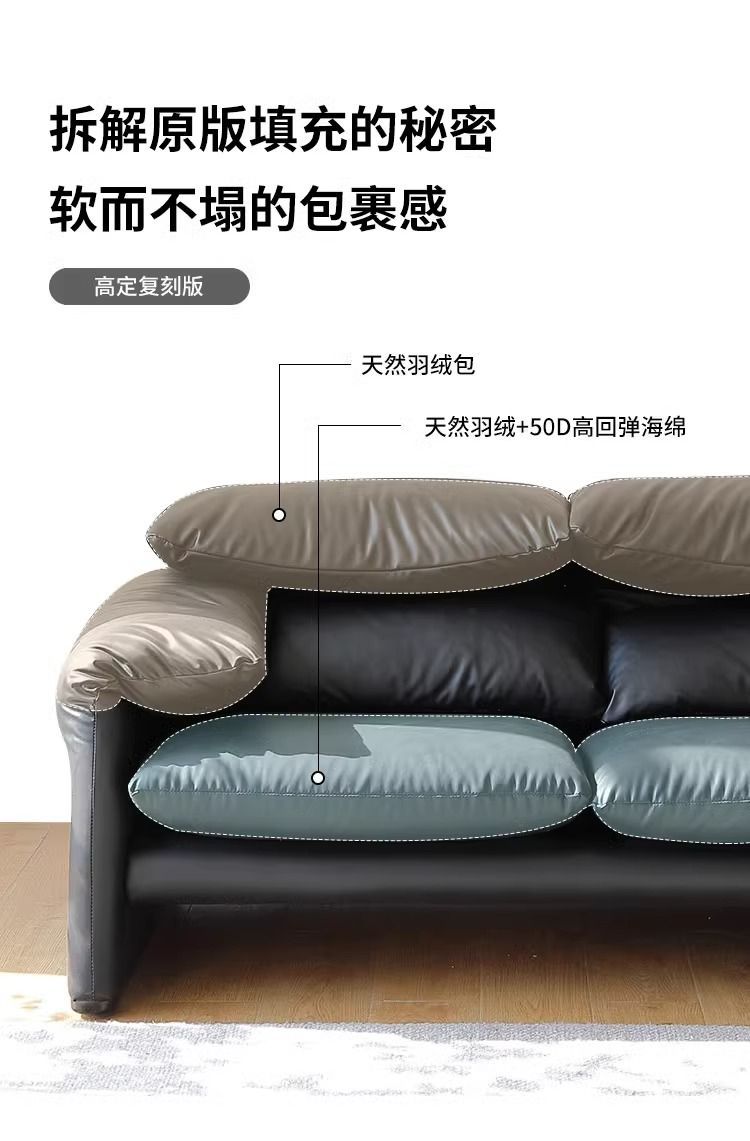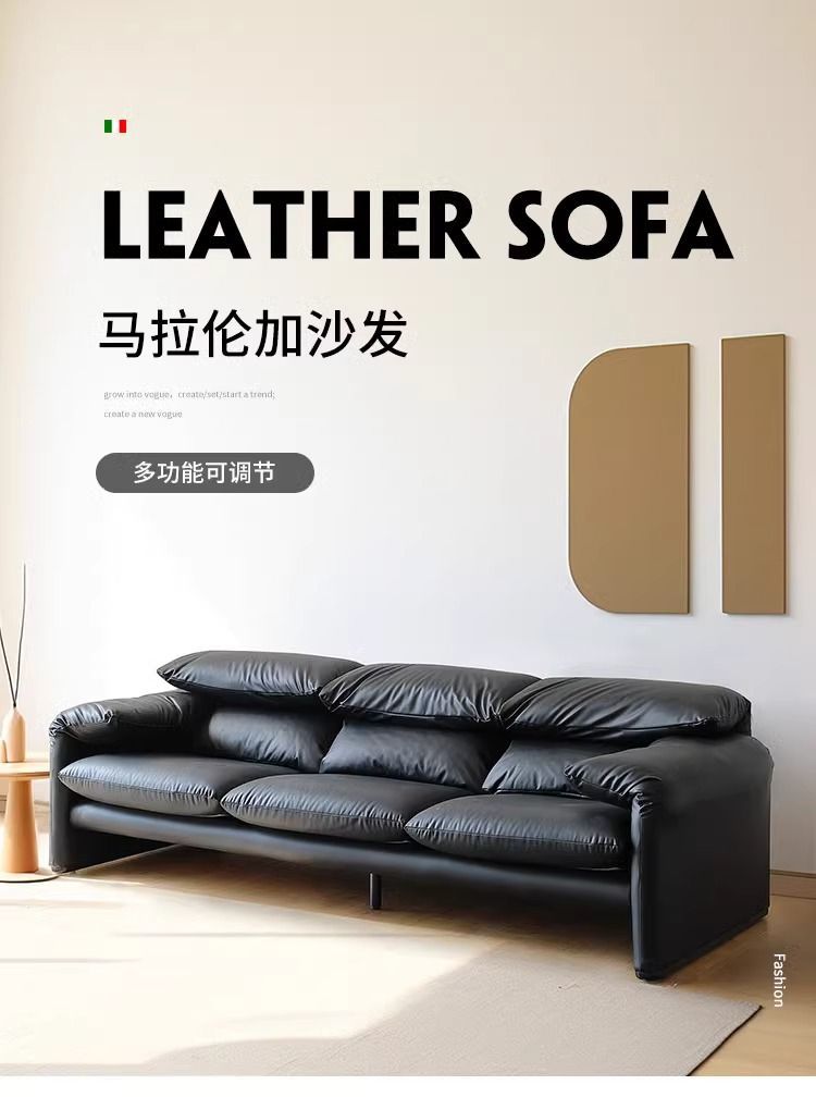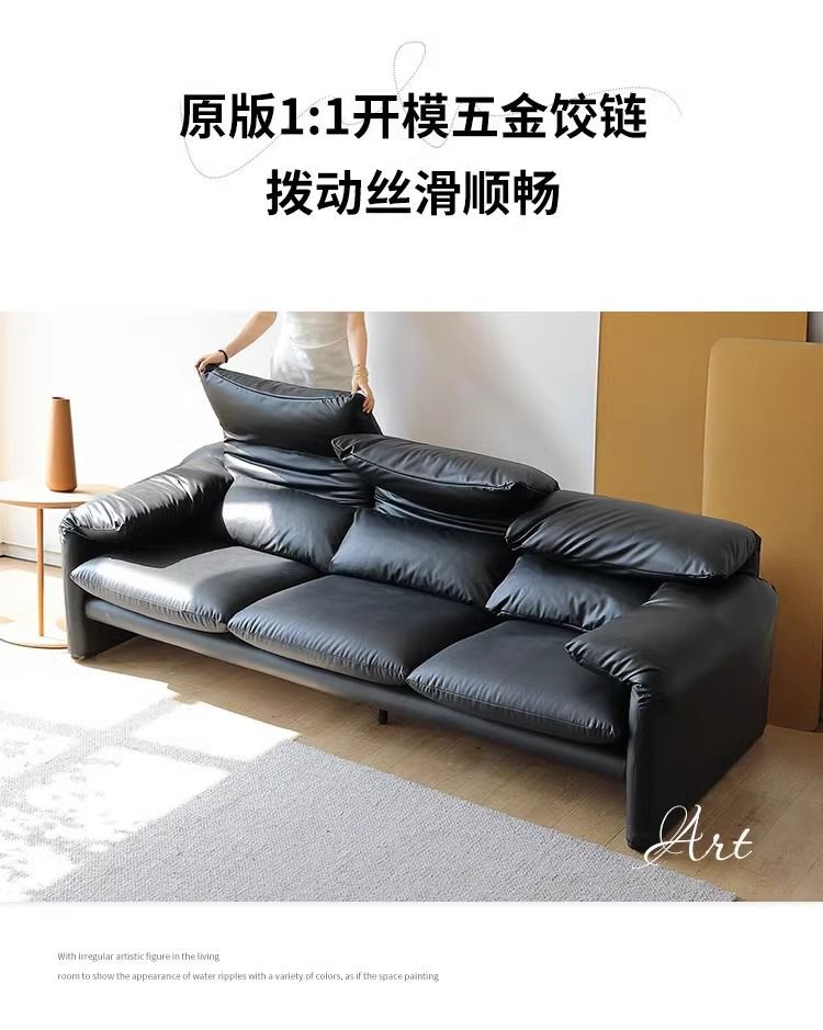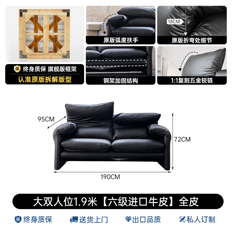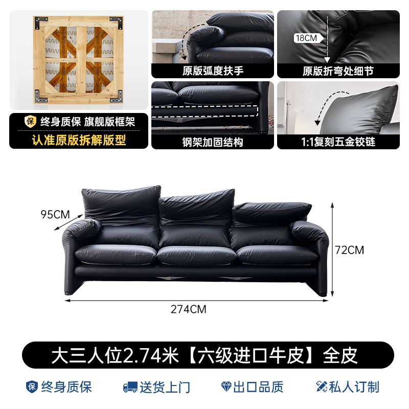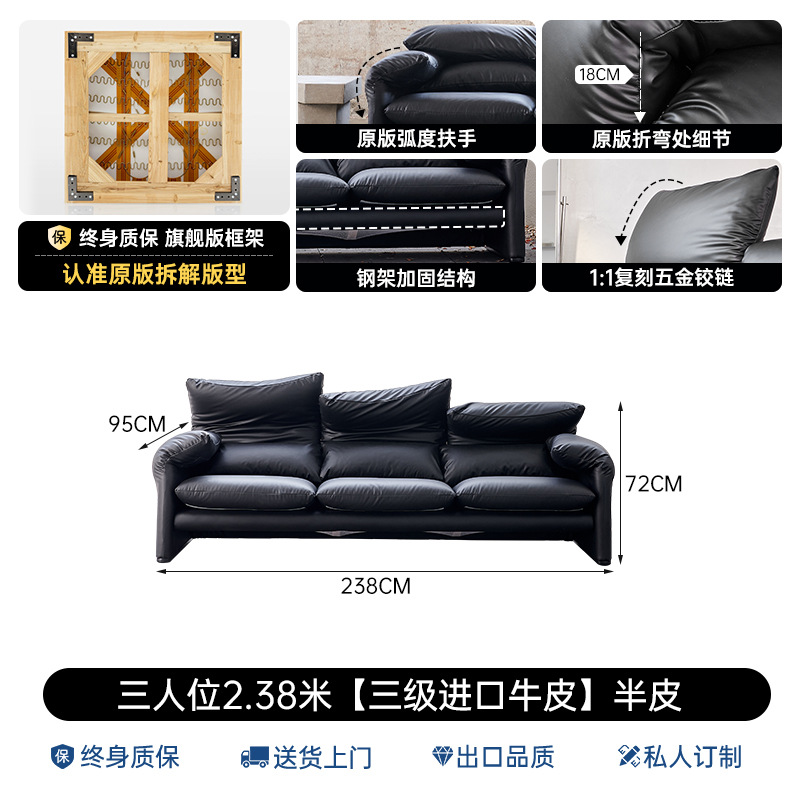 골동품 Maralenga 접히는 귀 가죽 소파 이탈리아 스타일 미니멀리스트 거실 스트레이트 로우 탑 레이어 Cowhide 소파 조합스토어 가기