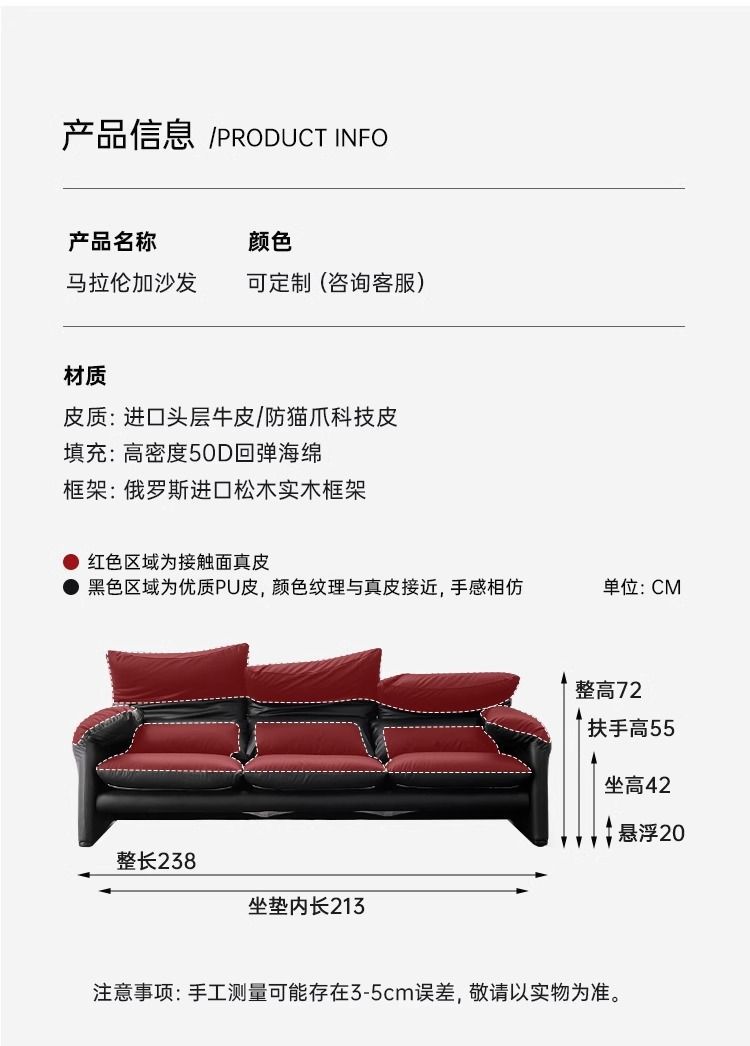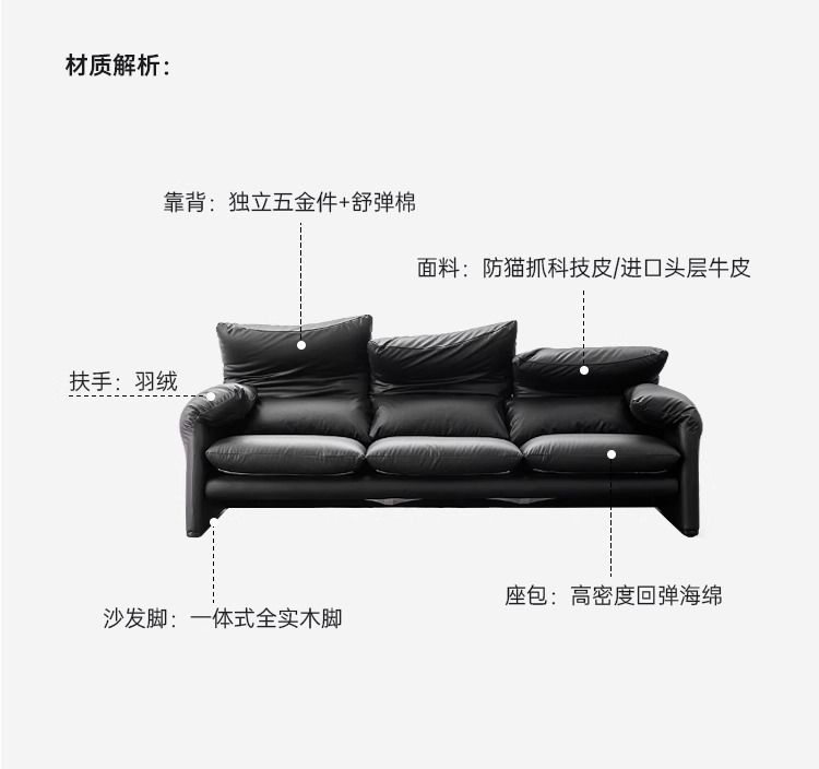 골동품 Maralenga 접히는 귀 가죽 소파 이탈리아 스타일 미니멀리스트 거실 스트레이트 로우 탑 레이어 Cowhide 소파 조합