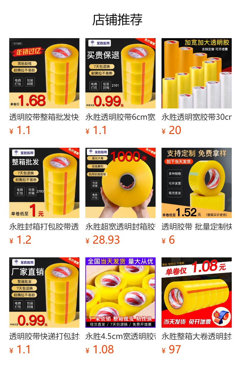 투명 테이프 전체 상자 도매 익스프레스 포장 테이프 대형 도매 노란색 대형 롤 테이프스토어 가기
