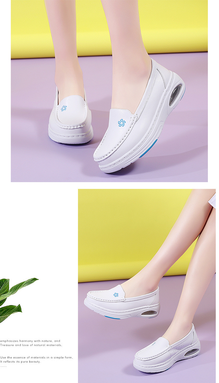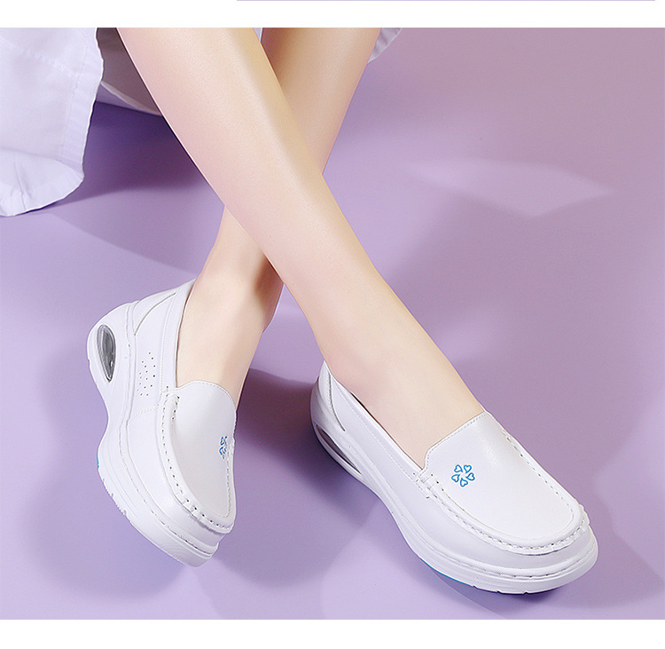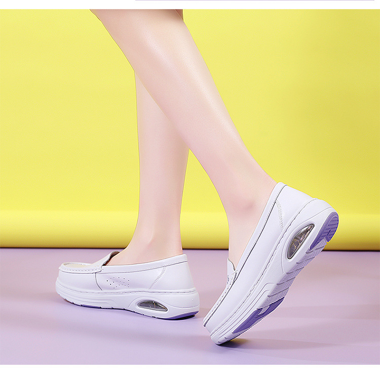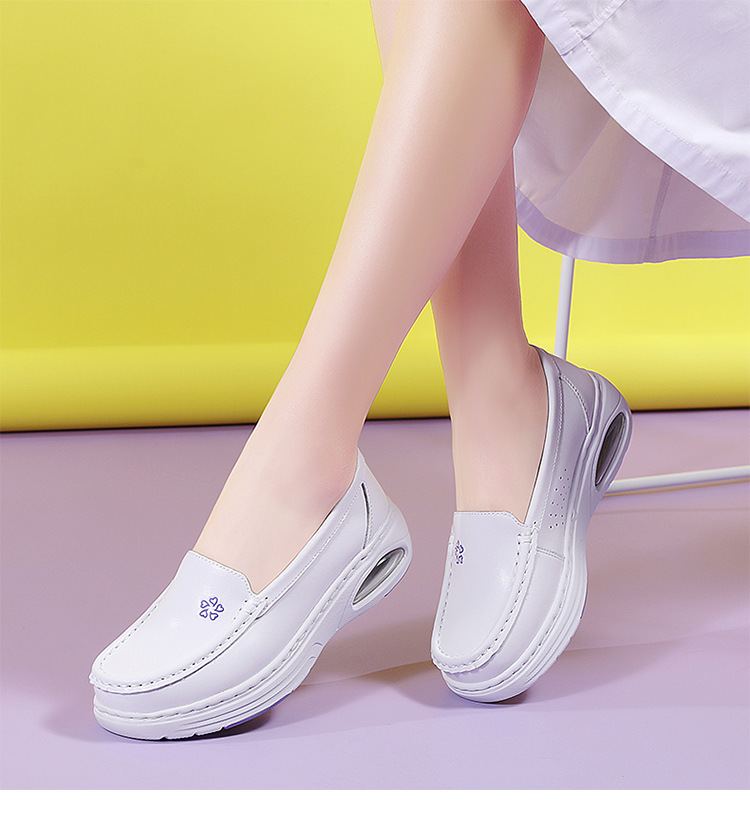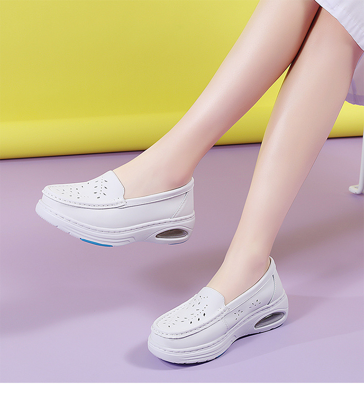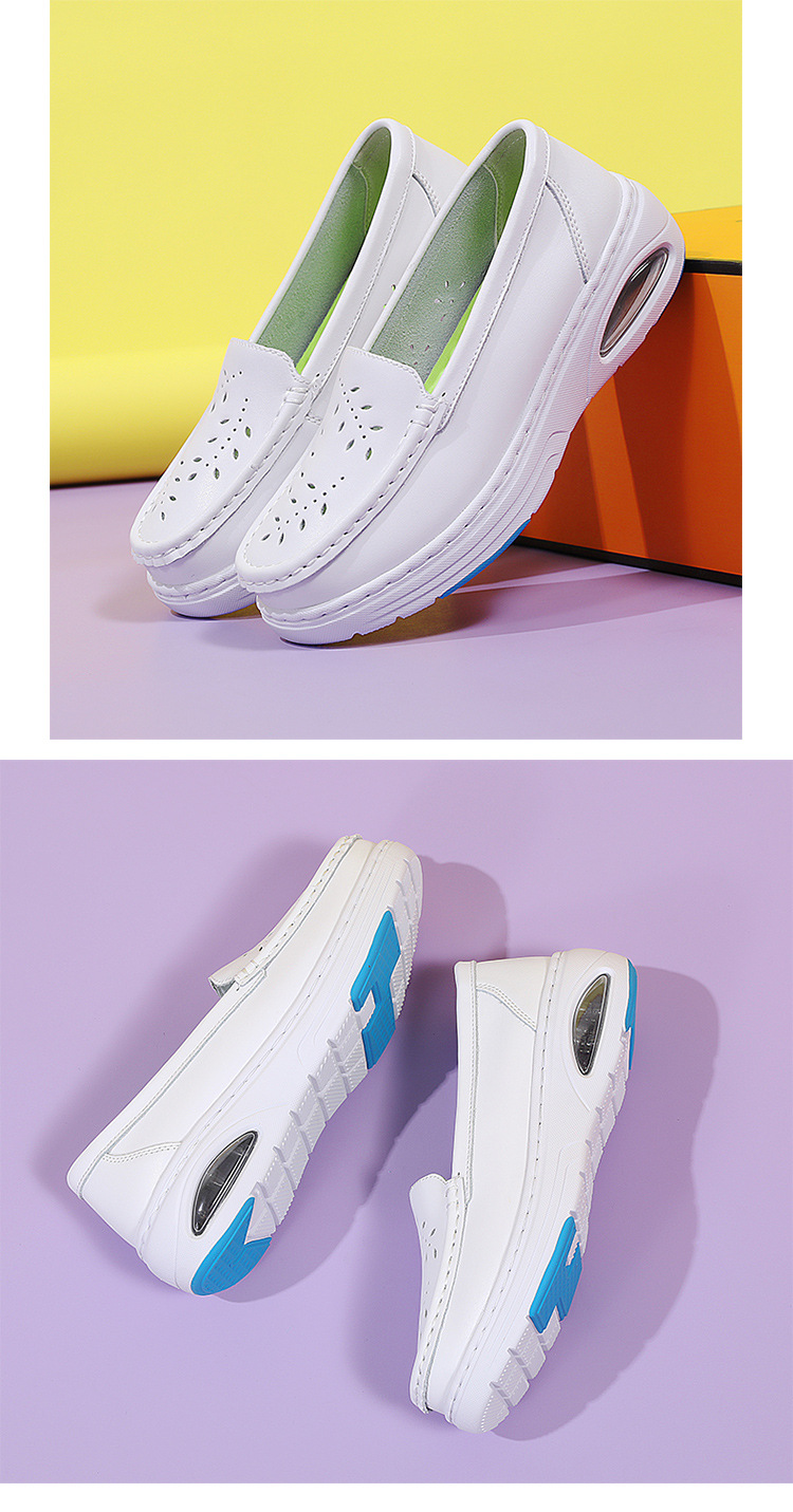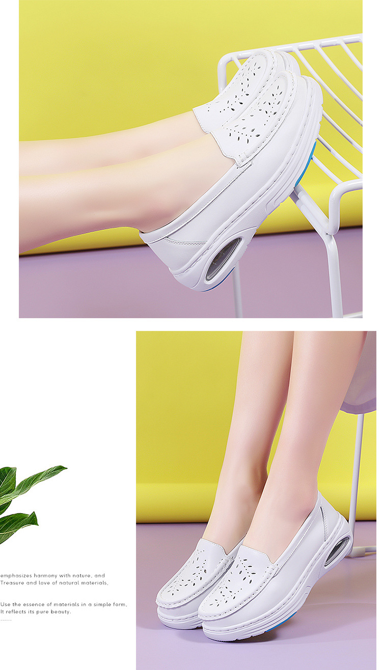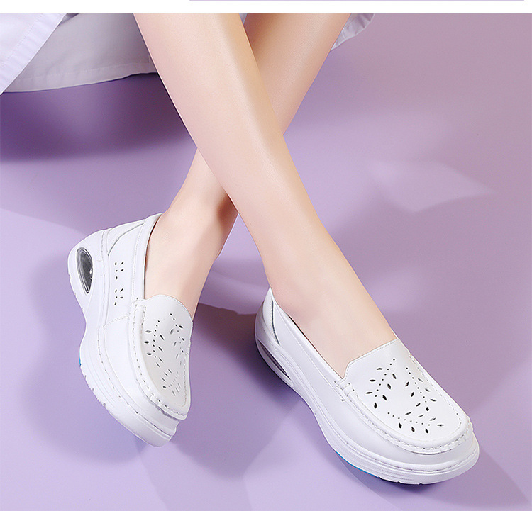 스팟 간호사 신발 정품 가죽 여성용 에어 쿠션 부드러운 바닥 중공 통기성 여름 병원 슬립 온 미끄럼 방지 작업 신발 도매