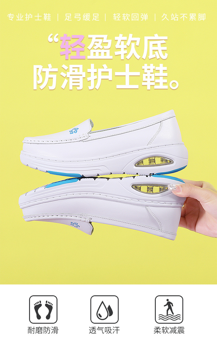 스팟 간호사 신발 정품 가죽 여성용 에어 쿠션 부드러운 바닥 중공 통기성 여름 병원 슬립 온 미끄럼 방지 작업 신발 도매스토어 가기