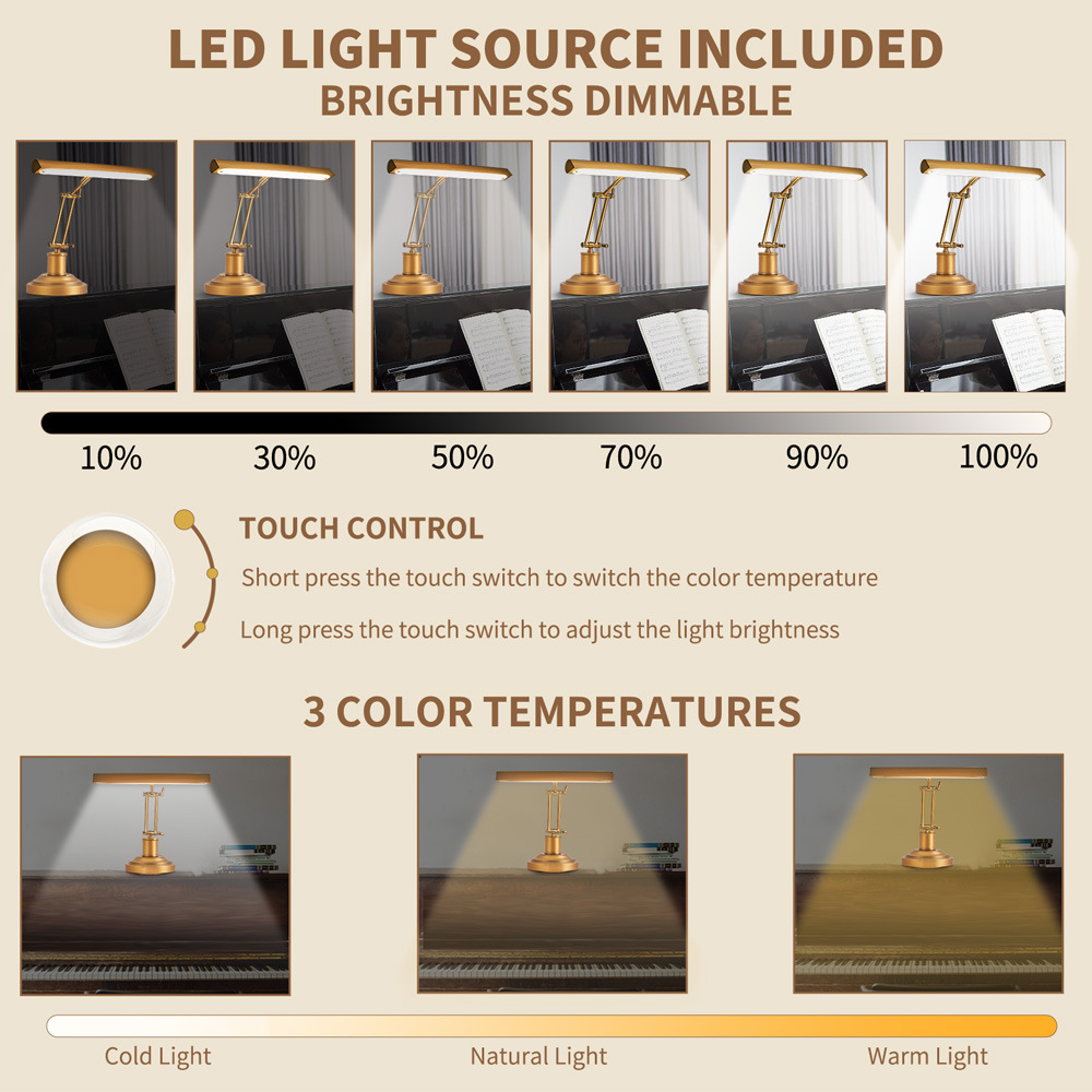 크로스보더 포장 유럽 및 미국 클래식 피아노 램프, 피아노 연습 악보 램프, 피아노 연주 LED 터치 디밍 눈 보호 악보 테이블 램프