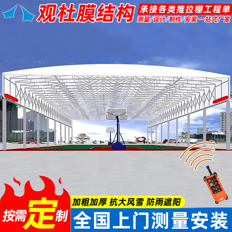 户外架空型篮球场活动雨棚 苏州遥控电动推拉篷 工厂仓库移动雨蓬