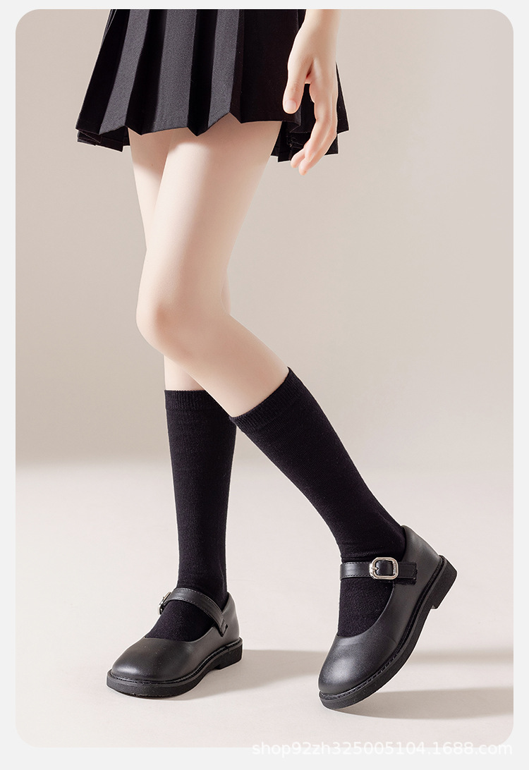 소녀 양말 봄과 가을 얇은 스타킹 화이트 블랙 JK 학술 스타일 송아지 소녀 무릎 높이 스타킹