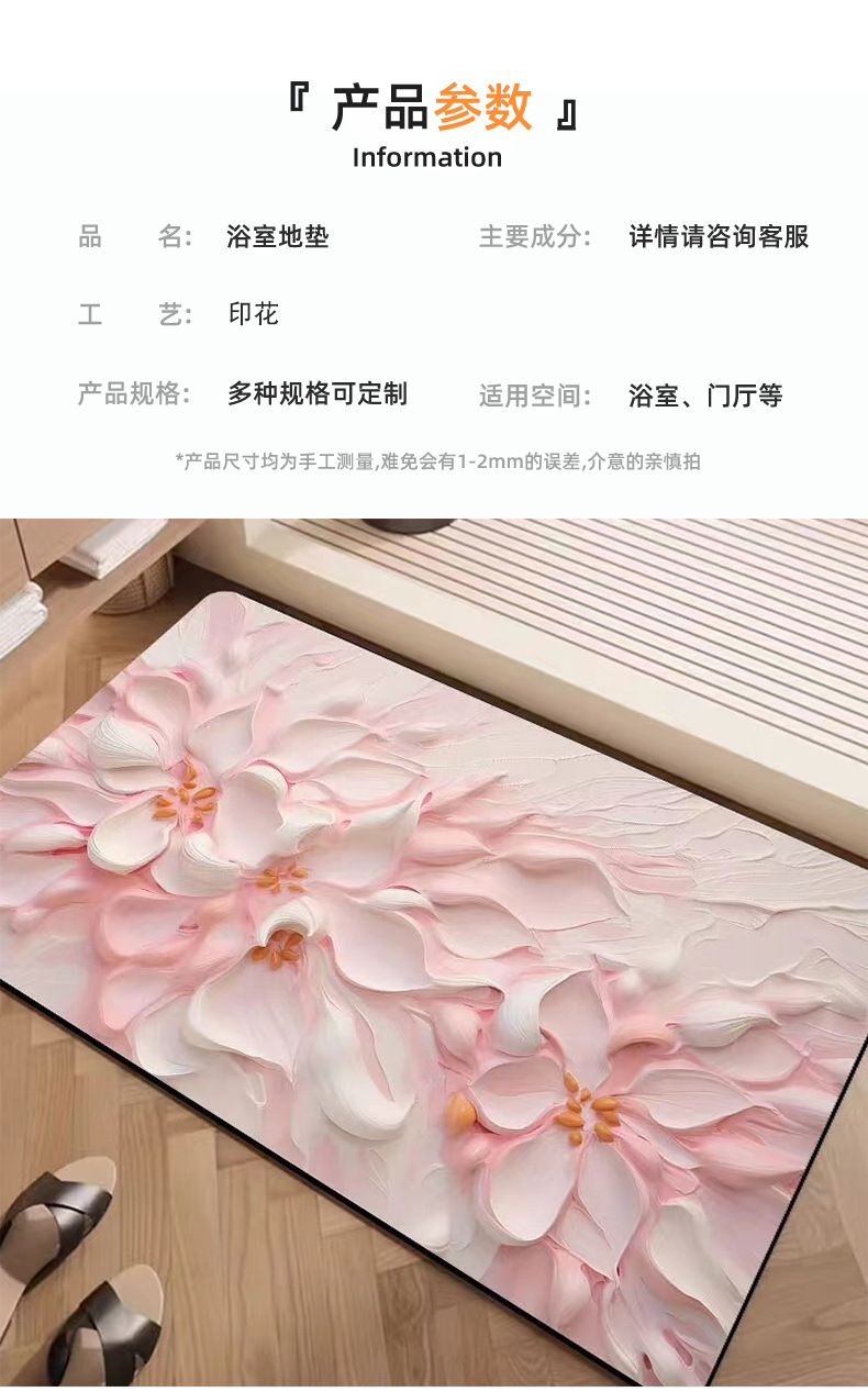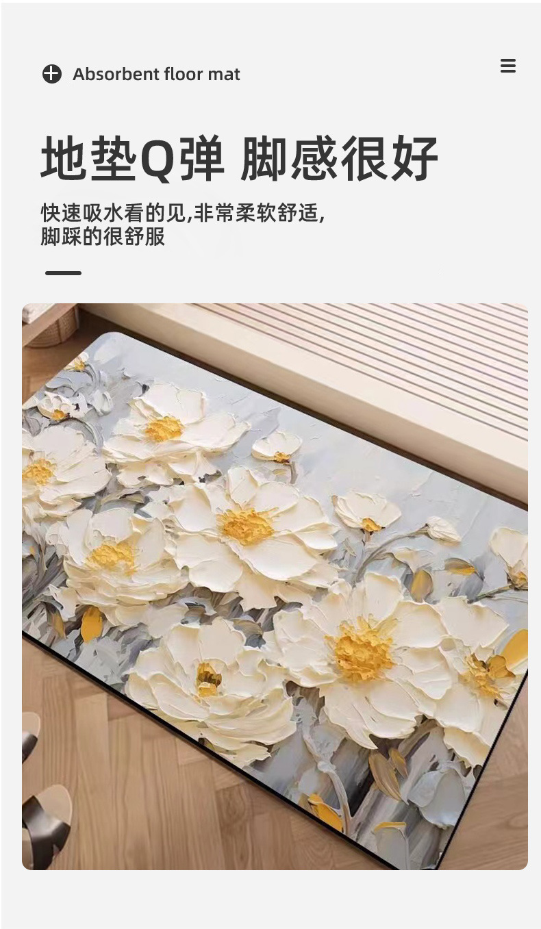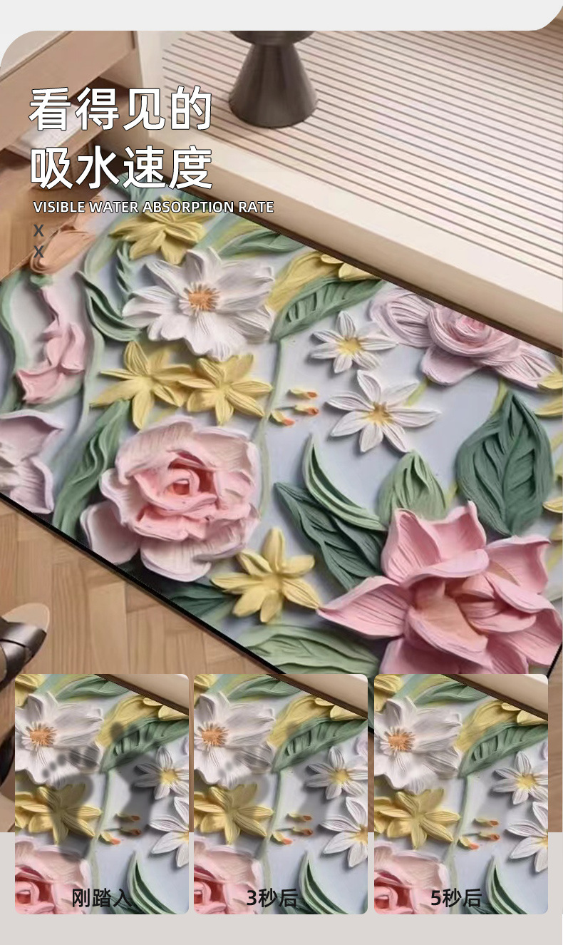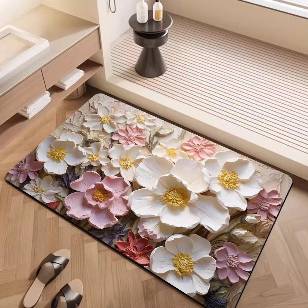 3D 꽃무늬 규조토 발매트 욕실 미끄럼 방지 발매트 욕실 흡수성 소프트 매트 화장실 욕실 출입구 속건 매트스토어 가기