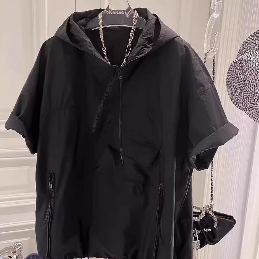 다크 브라운 카레 후드 반 소매 티셔츠 남성 아메리칸 스타일 학교 스타일 폴로 셔츠 여름 패션 브랜드 대형 디자인 센스 짧은 소매스토어 가기