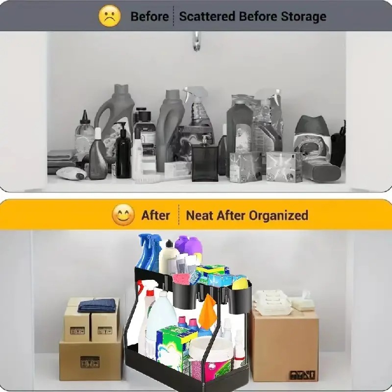 새로운 TEMU 아마존 낮은 싱크 랙 주방 욕실 스토리지 랙 다기능 더블 레이어 플라스틱 스토리지 랙