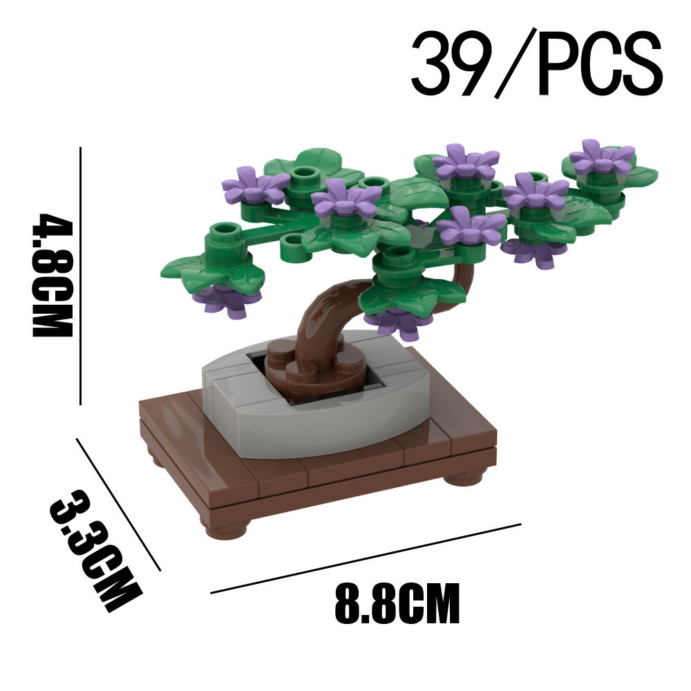 MOC 작은 입자 조립 건물 블록 꽃 공 소나무 화분 5 꽃잎 꽃 번들 장면 보완 정원 식물 장식품스토어 가기
