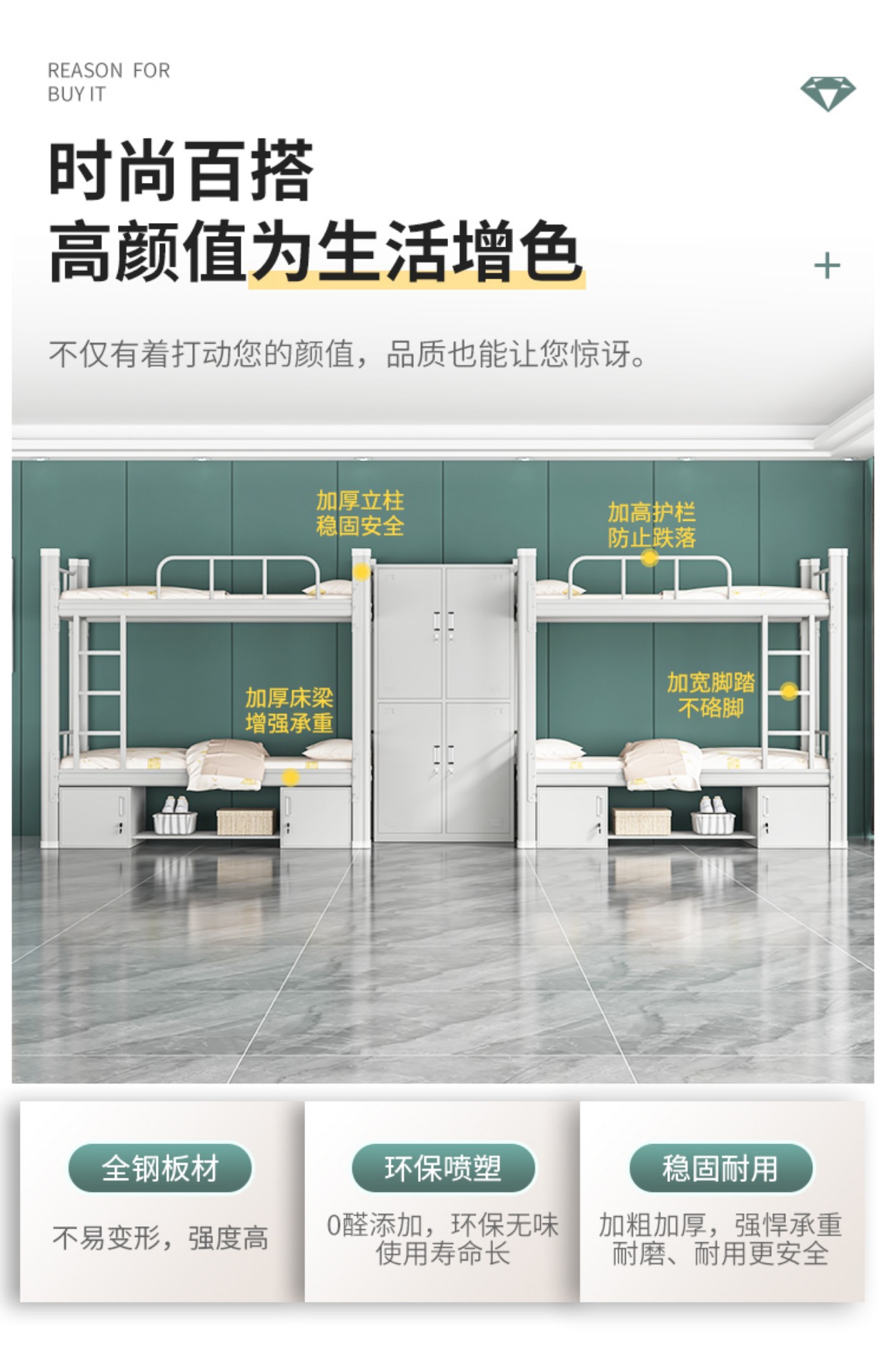 폐쇄 된 하이 로우 침대 상부 및 하부 이층 더블 아이언 침대 학생 기숙사 성인 직원 아파트 더블 침대 아이언 프레임 침대스토어 가기