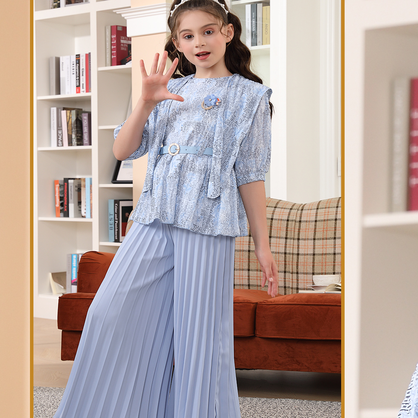 소녀의 인쇄 된 셔츠 넓은 다리 바지 세트 봄과 가을 2024 새로운 대형 어린이 여성복 대외 무역 중동 소녀스토어 가기