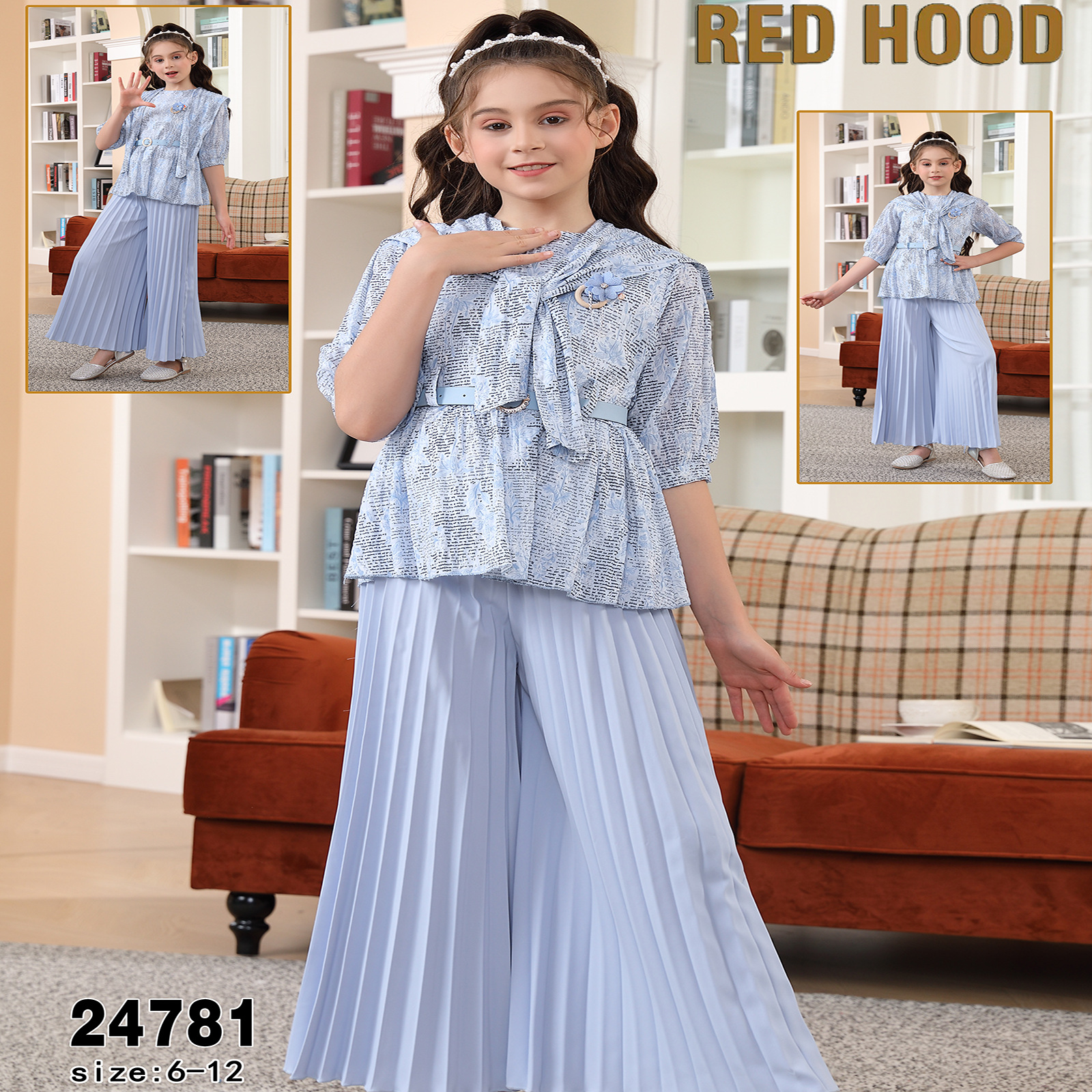 소녀의 인쇄 된 셔츠 넓은 다리 바지 세트 봄과 가을 2024 새로운 대형 어린이 여성복 대외 무역 중동 소녀