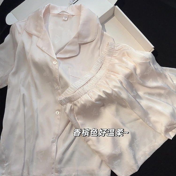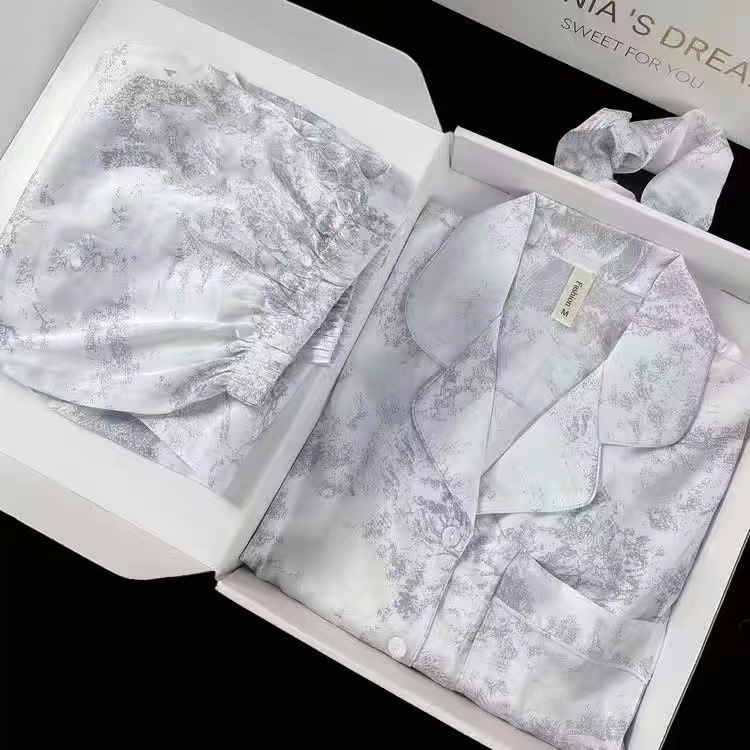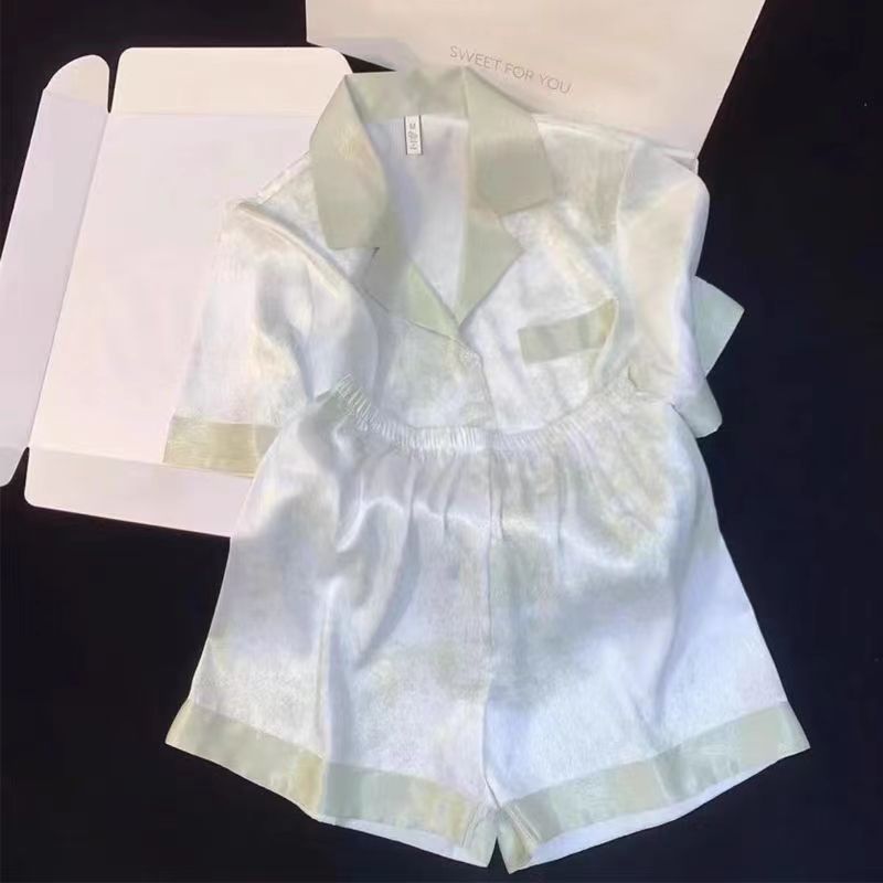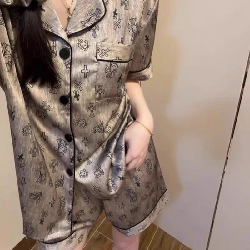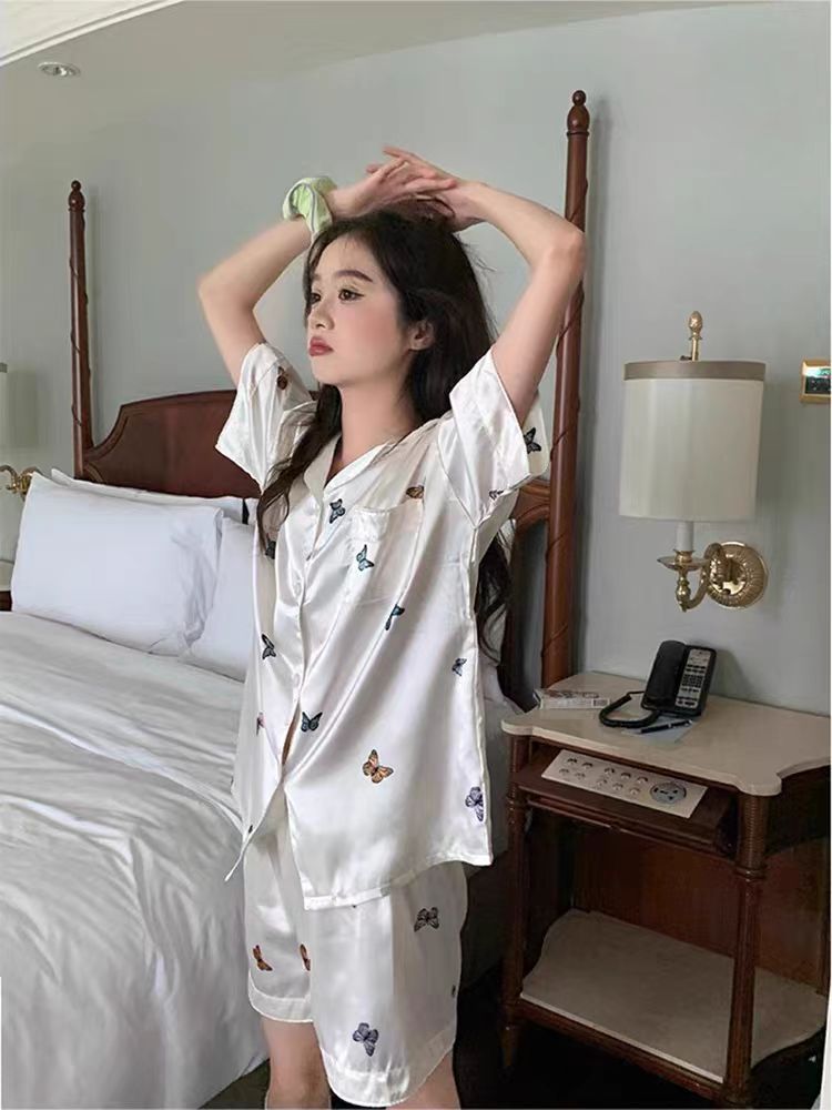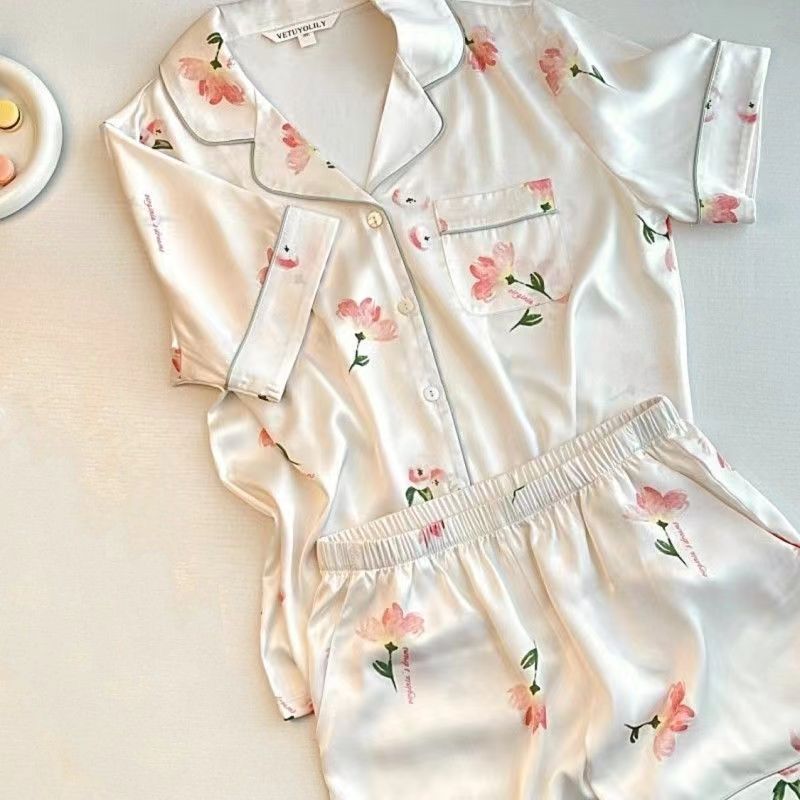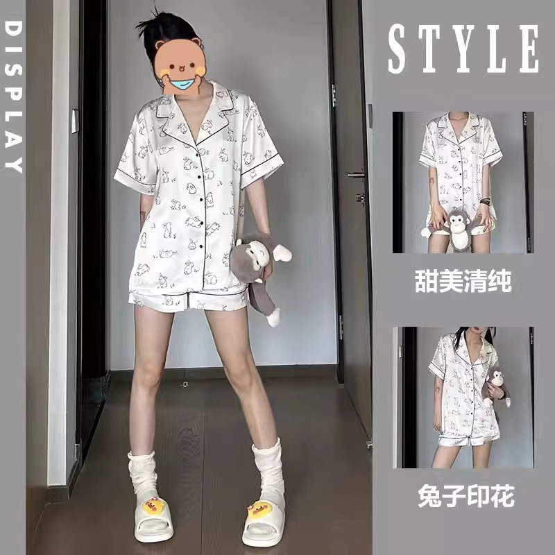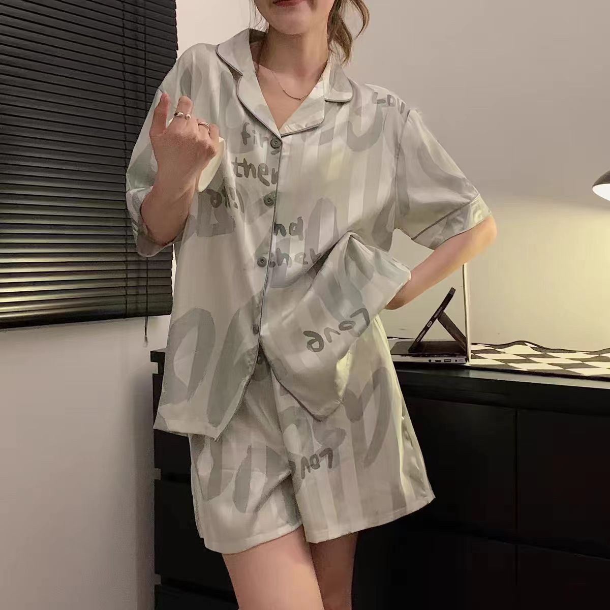 뉴 파자마 여성 여름 아이스 실크 카디건 반팔 대외 무역 국경 여름 Ins 스타일 하이 엔드 홈 의류 세트스토어 가기