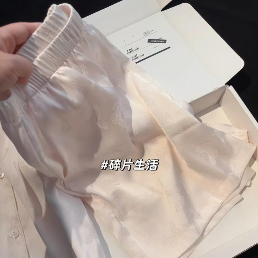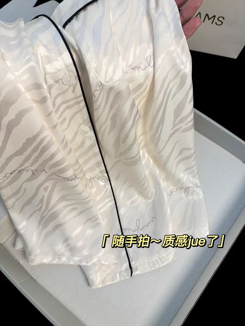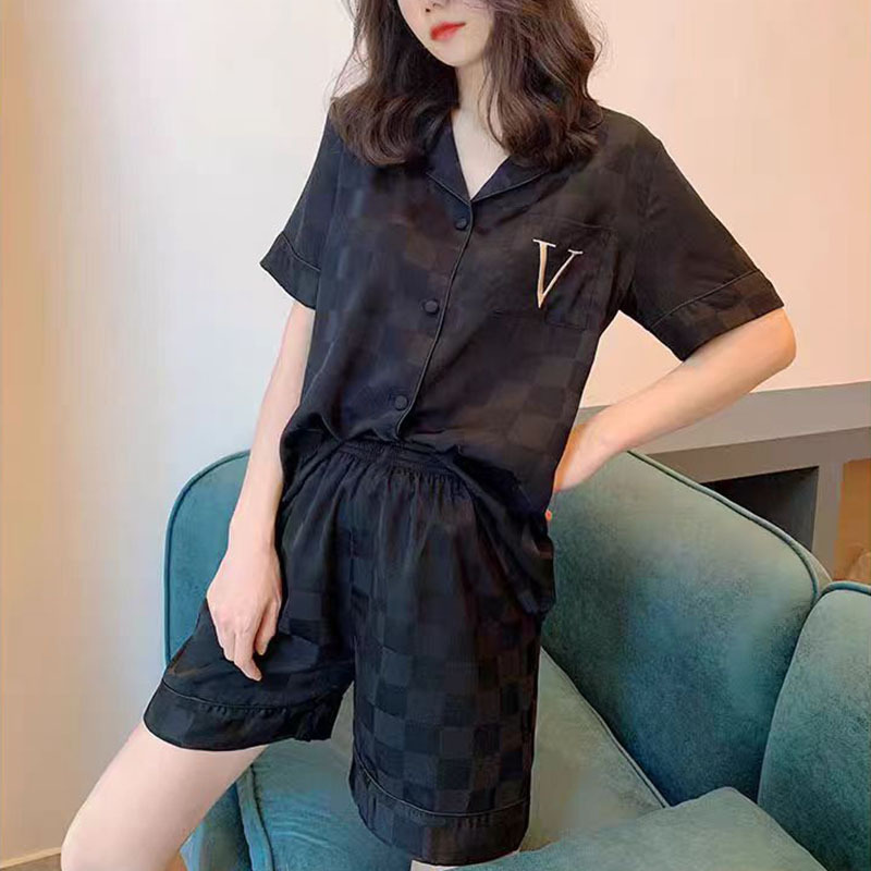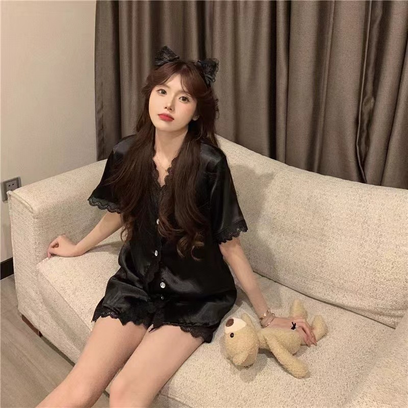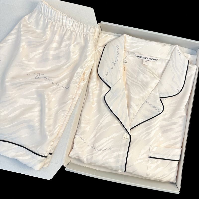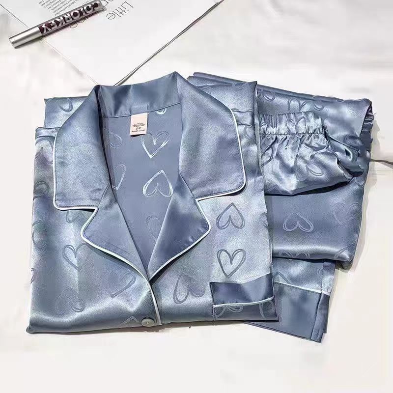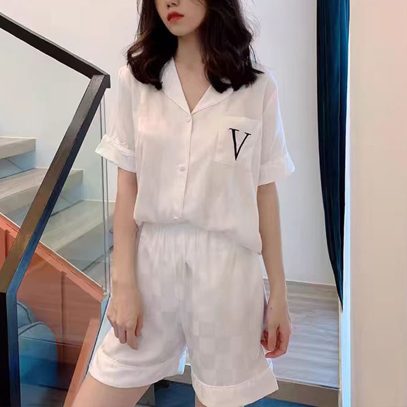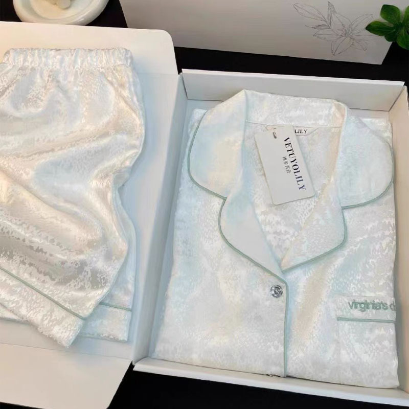 뉴 파자마 여성 여름 아이스 실크 카디건 반팔 대외 무역 국경 여름 Ins 스타일 하이 엔드 홈 의류 세트스토어 가기