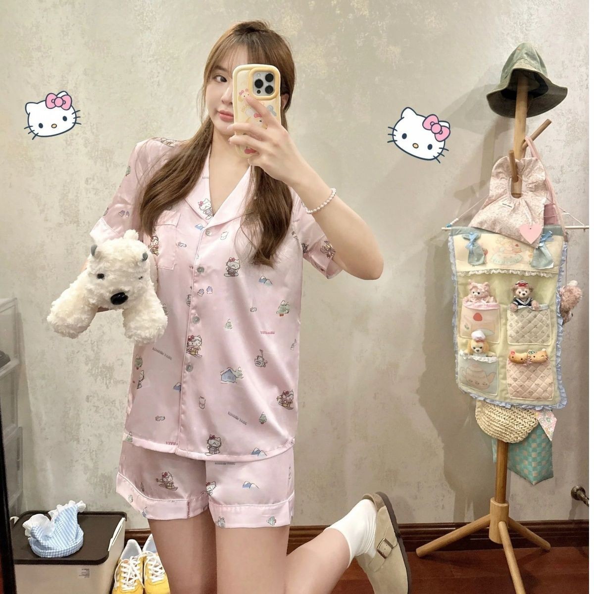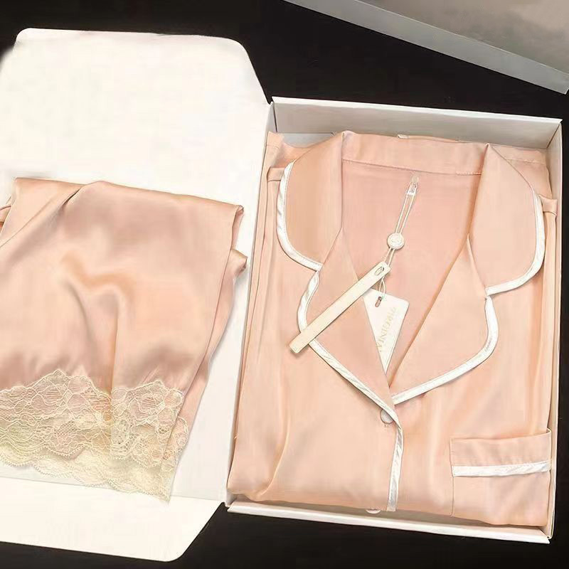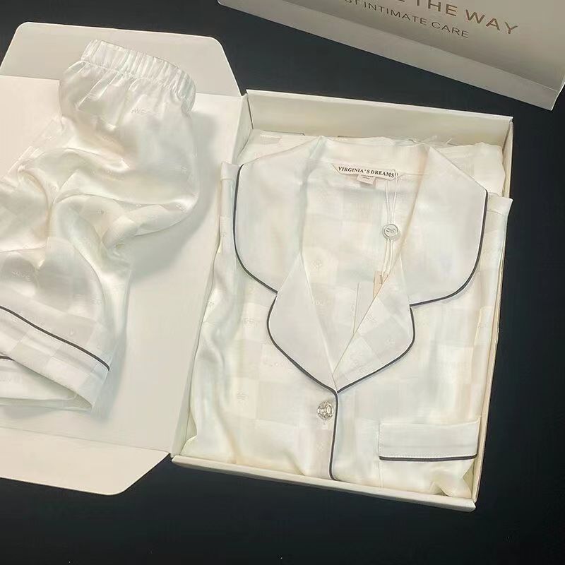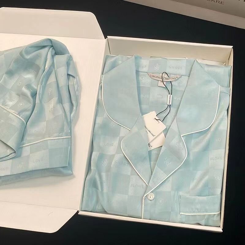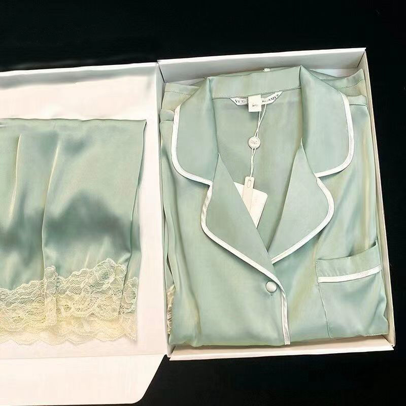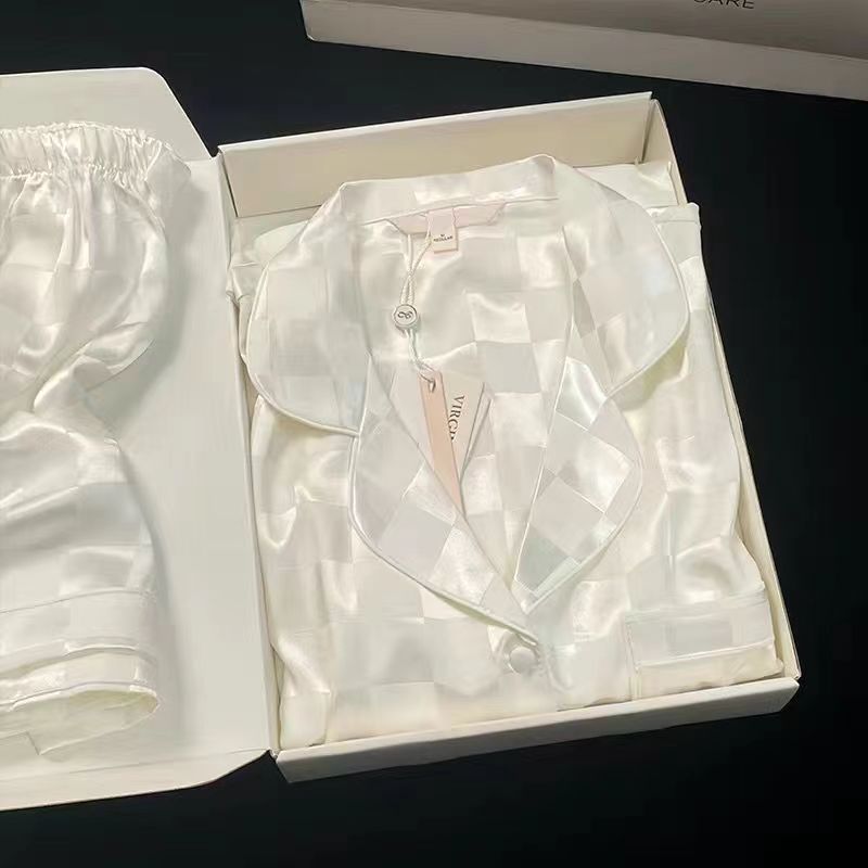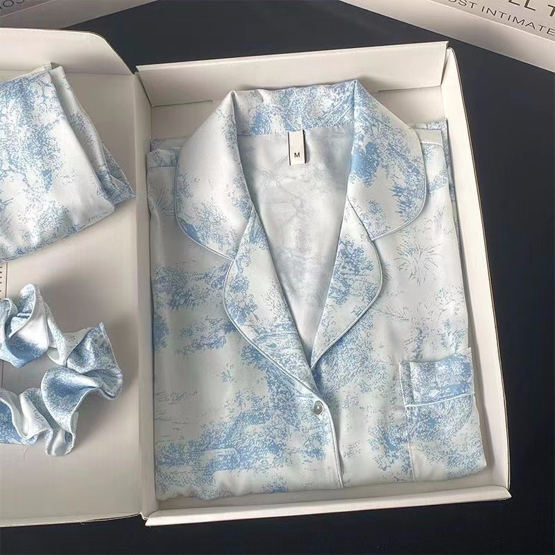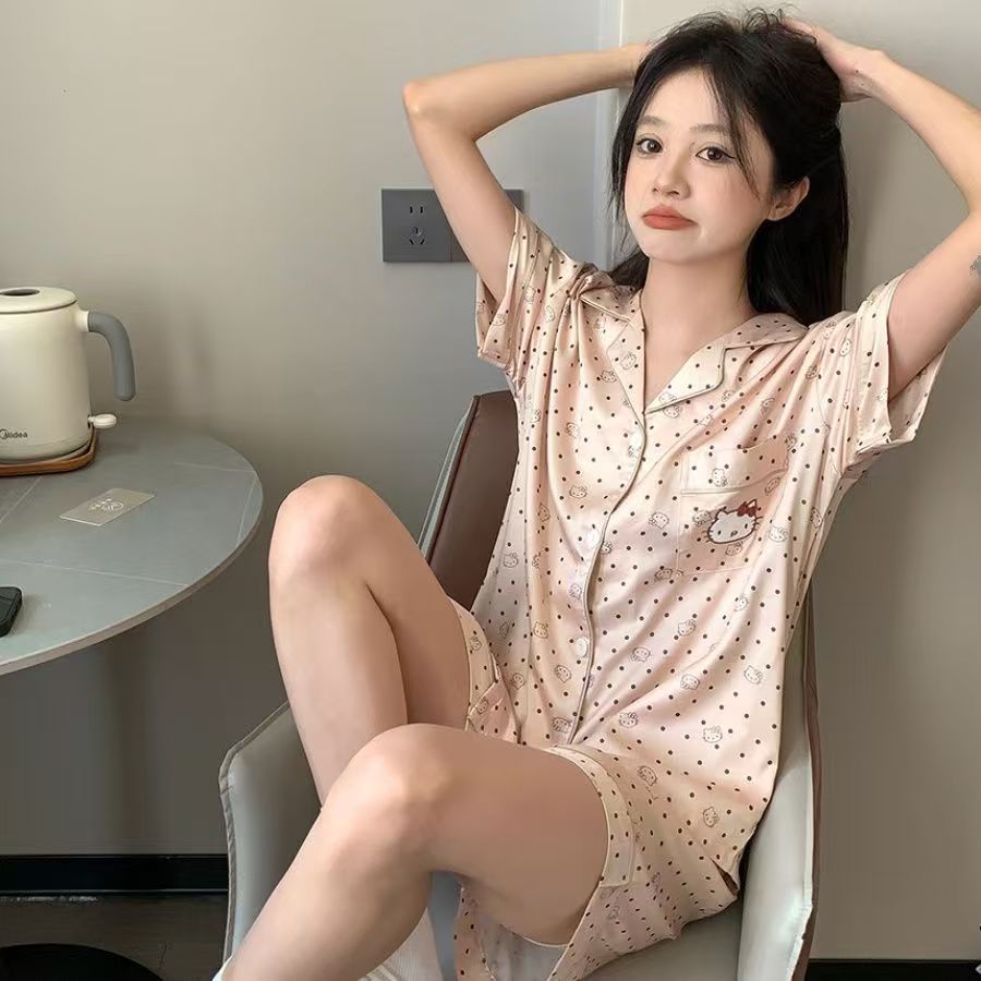 뉴 파자마 여성 여름 아이스 실크 카디건 반팔 대외 무역 국경 여름 Ins 스타일 하이 엔드 홈 의류 세트스토어 가기