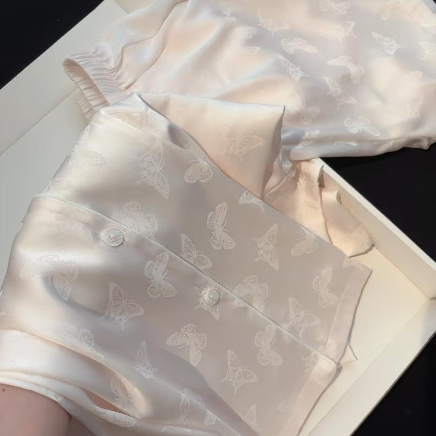 뉴 파자마 여성 여름 아이스 실크 카디건 반팔 대외 무역 국경 여름 Ins 스타일 하이 엔드 홈 의류 세트