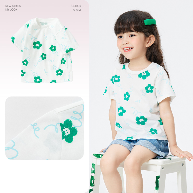 할인 클리어런스 걸스 반팔 티셔츠 어린이 아기 여름 2024 새로운 패션 느슨한 편안한 올 매치 탑스토어 가기