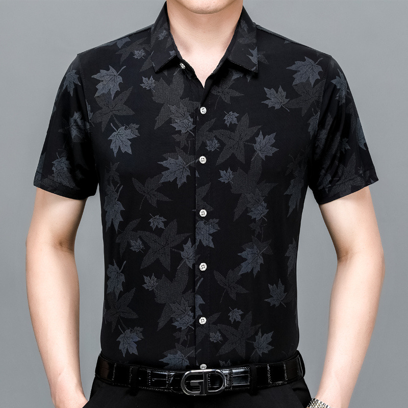 2014 년 여름 드래곤 년 새 셔츠 남자 반팔 캐주얼 비 다림질 아이스 실크 통기성 꽃 셔츠 국경 대외 무역