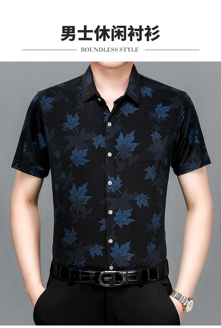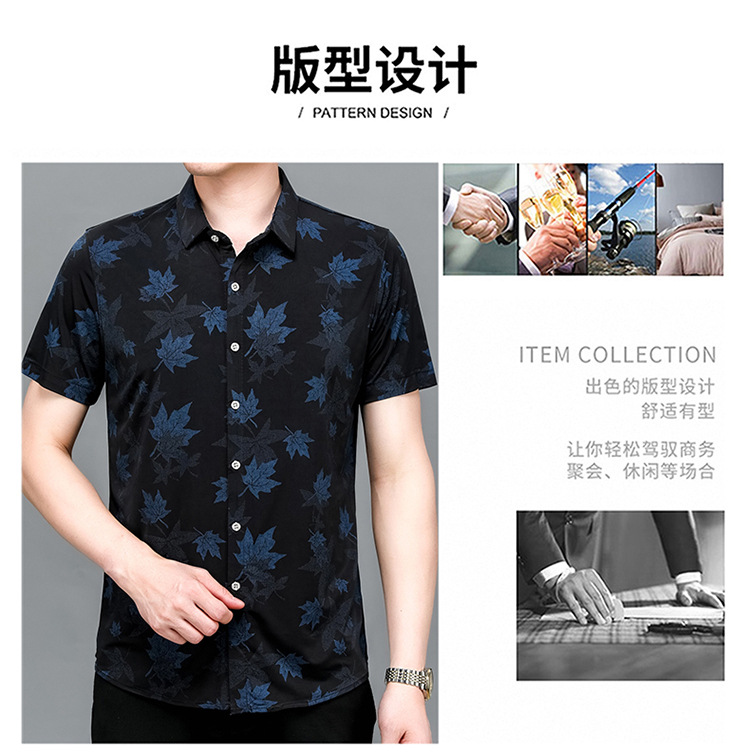 2014 년 여름 드래곤 년 새 셔츠 남자 반팔 캐주얼 비 다림질 아이스 실크 통기성 꽃 셔츠 국경 대외 무역스토어 가기