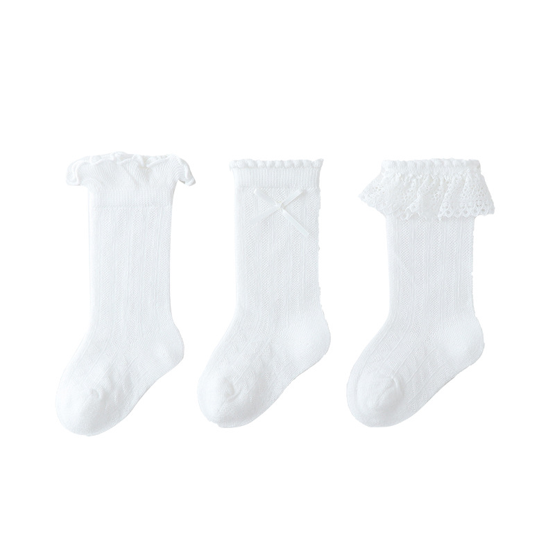 소녀 봄과 여름 메쉬 얇은 귀여운 공주 스타일 아기 스타킹 솔리드 컬러 순수 코튼 신생아 면화 양말