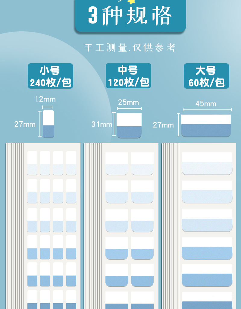 그라디언트 컬러 하이 컬러 값 인덱스 스티커 쓰기 포스트잇 노트 고등학생 및 중학생을위한 특수 리드 스티커 투명 쓰기