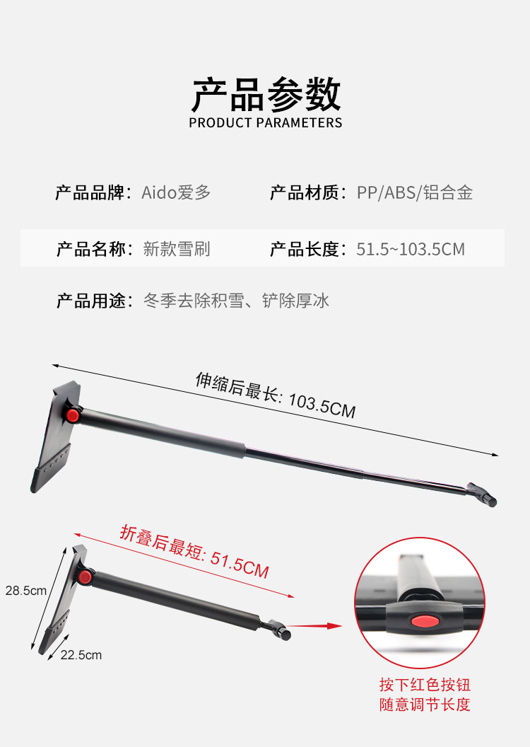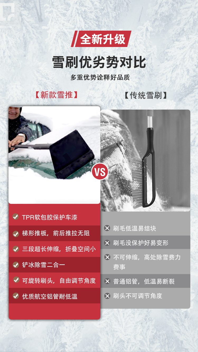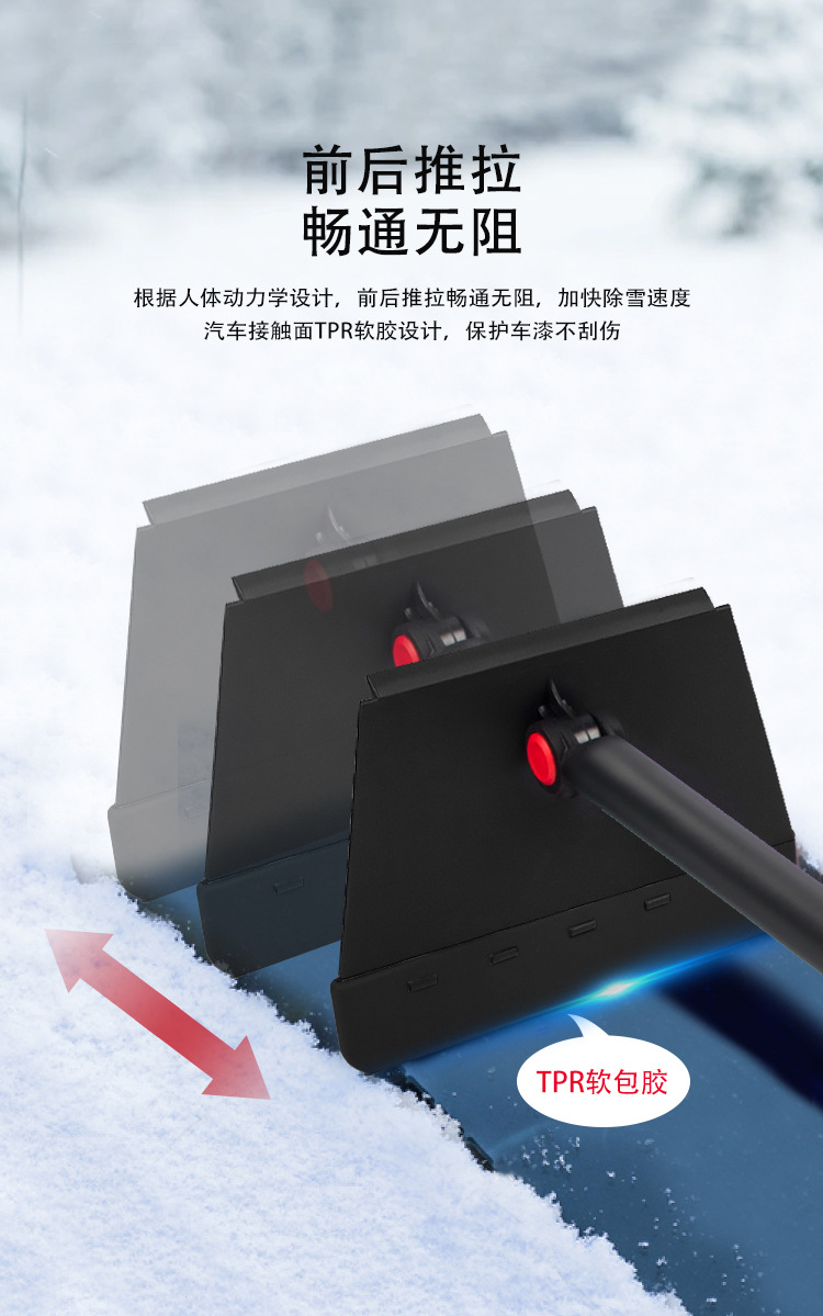 다기능 개폐식 스노우 푸시 TPR 소프트 코팅 빙수 제거 및 제설 투인원 브러시 헤드 회전 가능