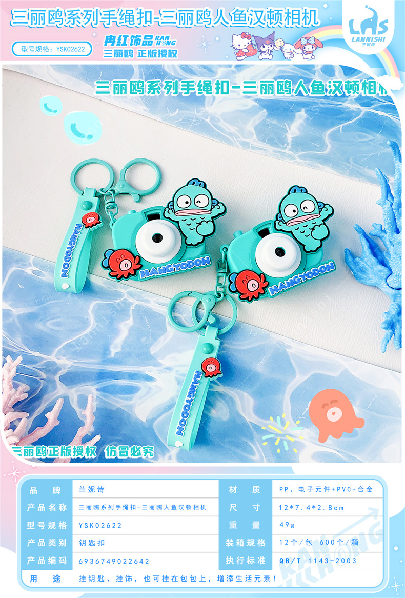 진짜 산리오 인어 한톤 키 체인 인형 가방 펜던트 못생긴 물고기 만화 인형 기계 인형 도매 도구스토어 가기