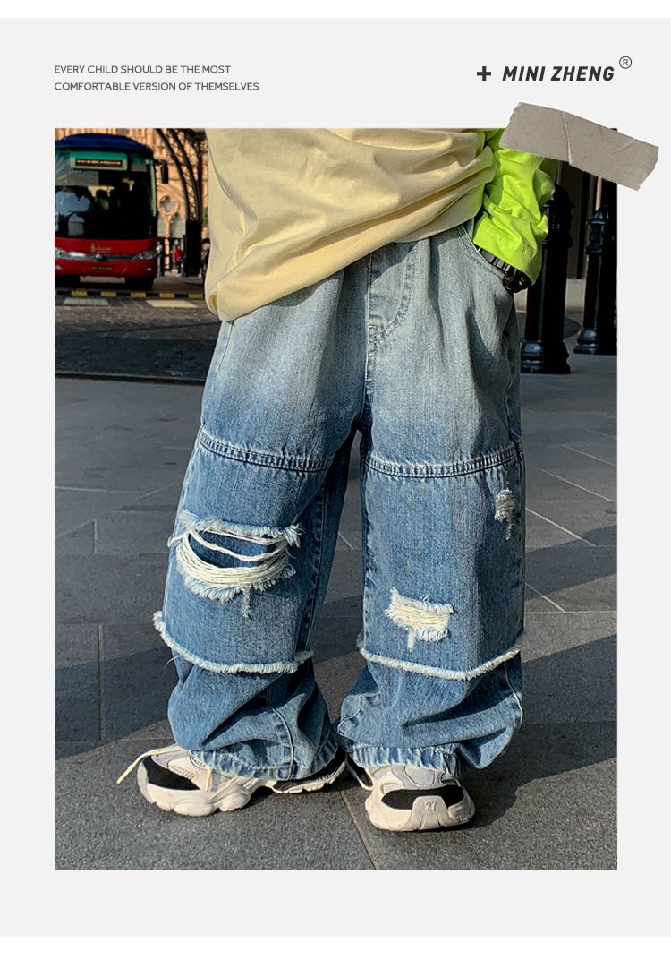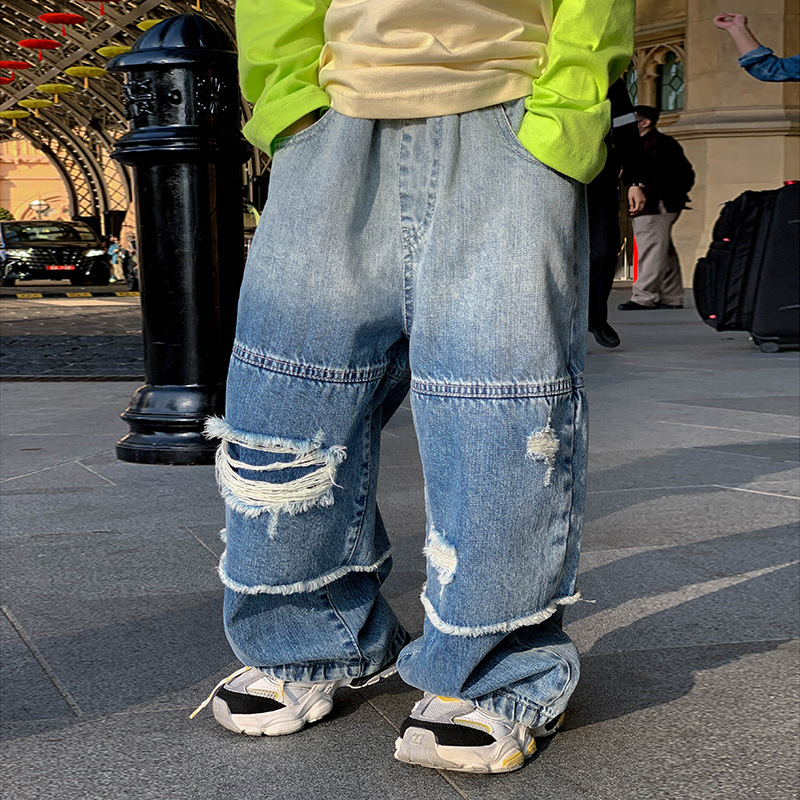 소년 패션 청바지 2024 가을 새로운 어린이 잘 생긴 느슨한 바지 어린이 올매치 스트레이트 트렌디 바지스토어 가기