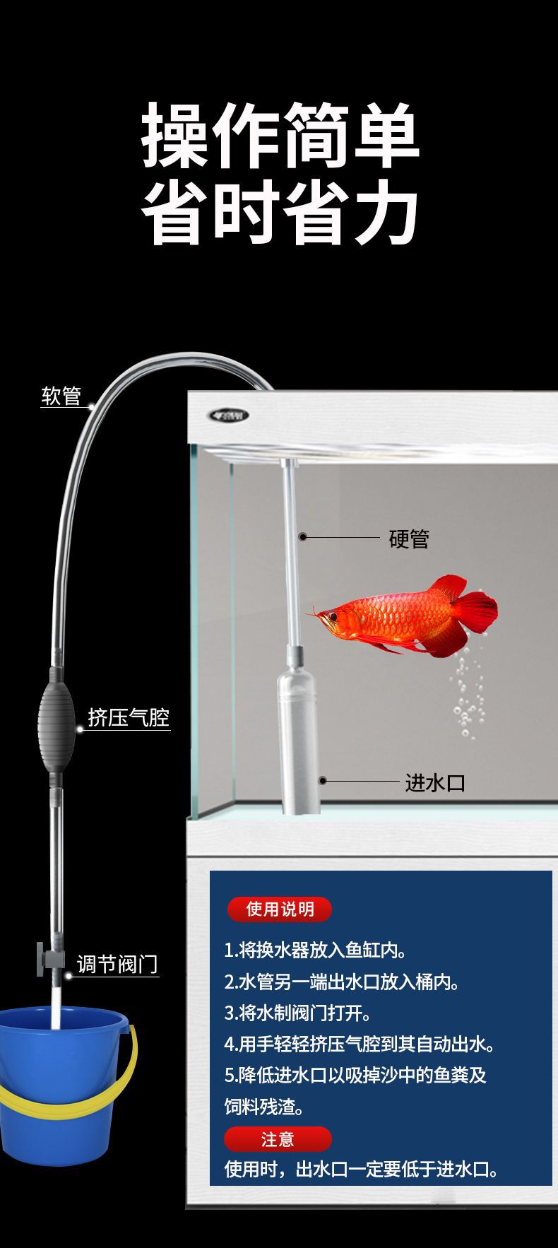 가정용 어항 물 교환기 화장실 흡입 수동 사이펀 펌프 파이프 물고기 탱크 청소 배설물 흡입 새로운 도매스토어 가기
