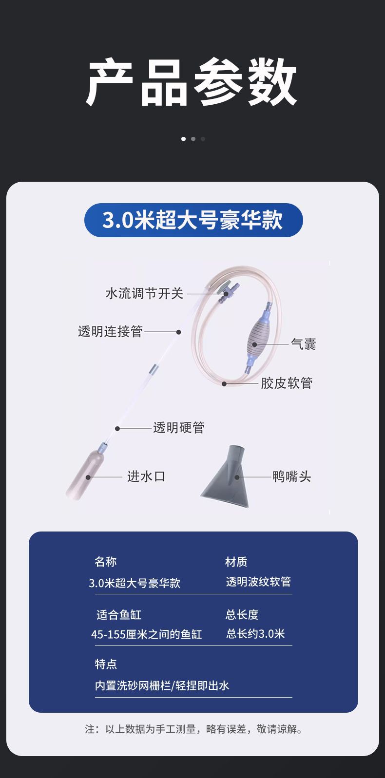 • 업그레이드 모델 3.0m [고정 클립/덕빌 헤드/모래 흡입 헤드]