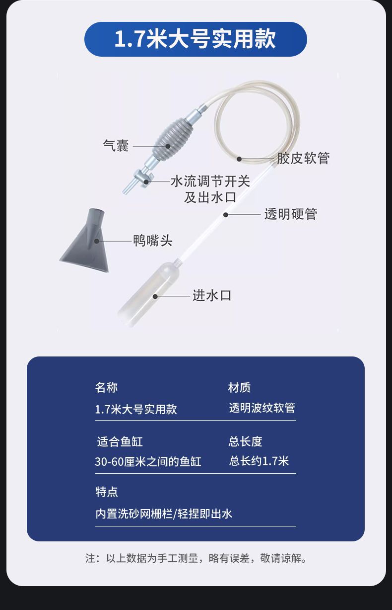 가정용 어항 물 교환기 화장실 흡입 수동 사이펀 펌프 파이프 물고기 탱크 청소 배설물 흡입 새로운 도매