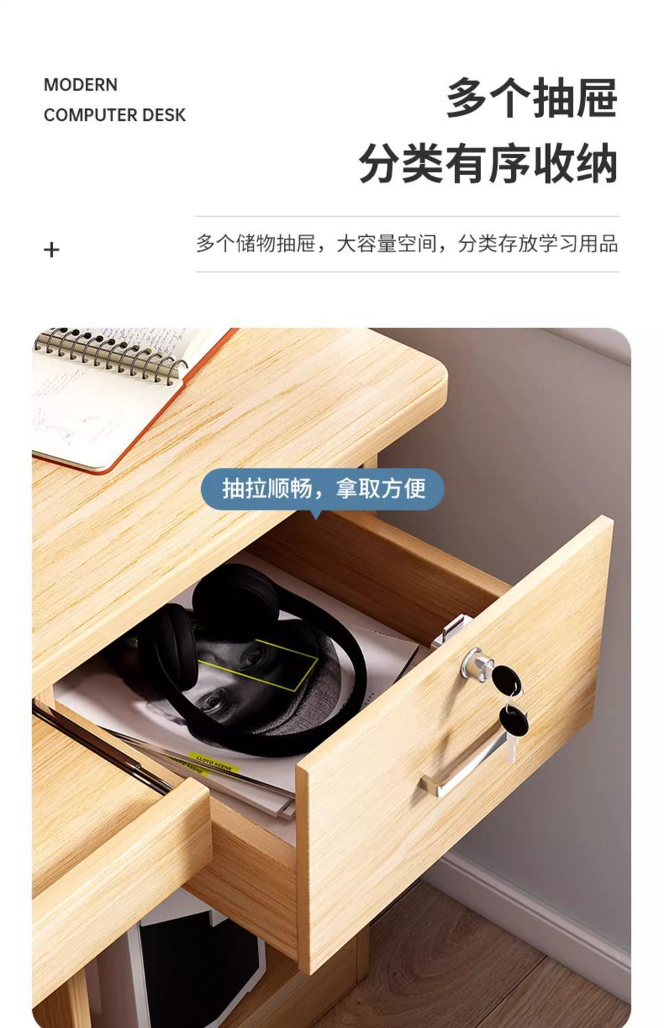 • [5 장 캐비닛 그리기] 목가적 인 오크 색 140CM