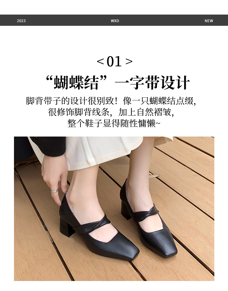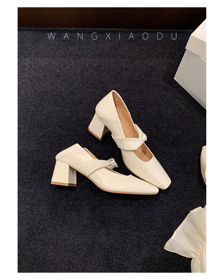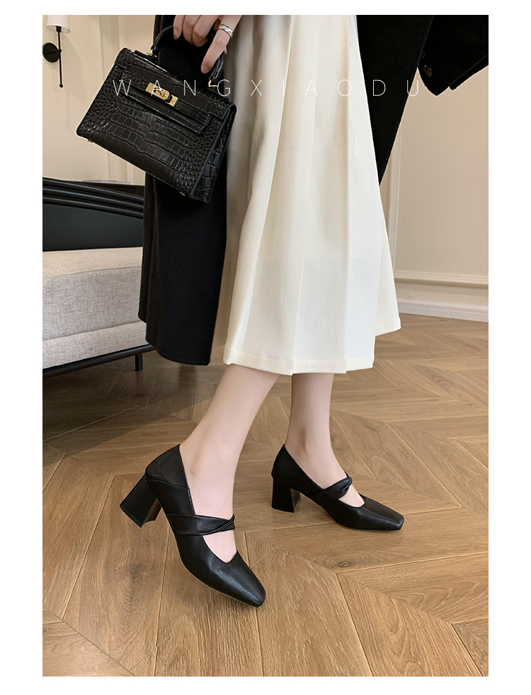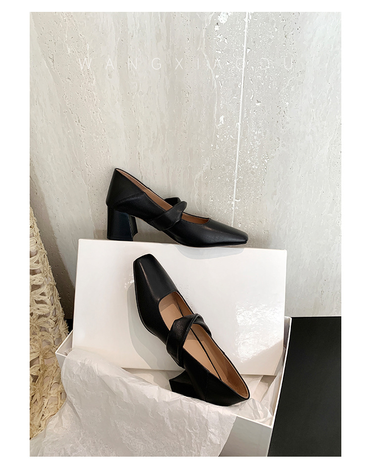 [왕샤오두] 사랑에 대한 분위기 속에서 ● 스퀘어 헤드 메리 제인 여성 신발 하이힐 두꺼운 힐링 작은 가죽 신발