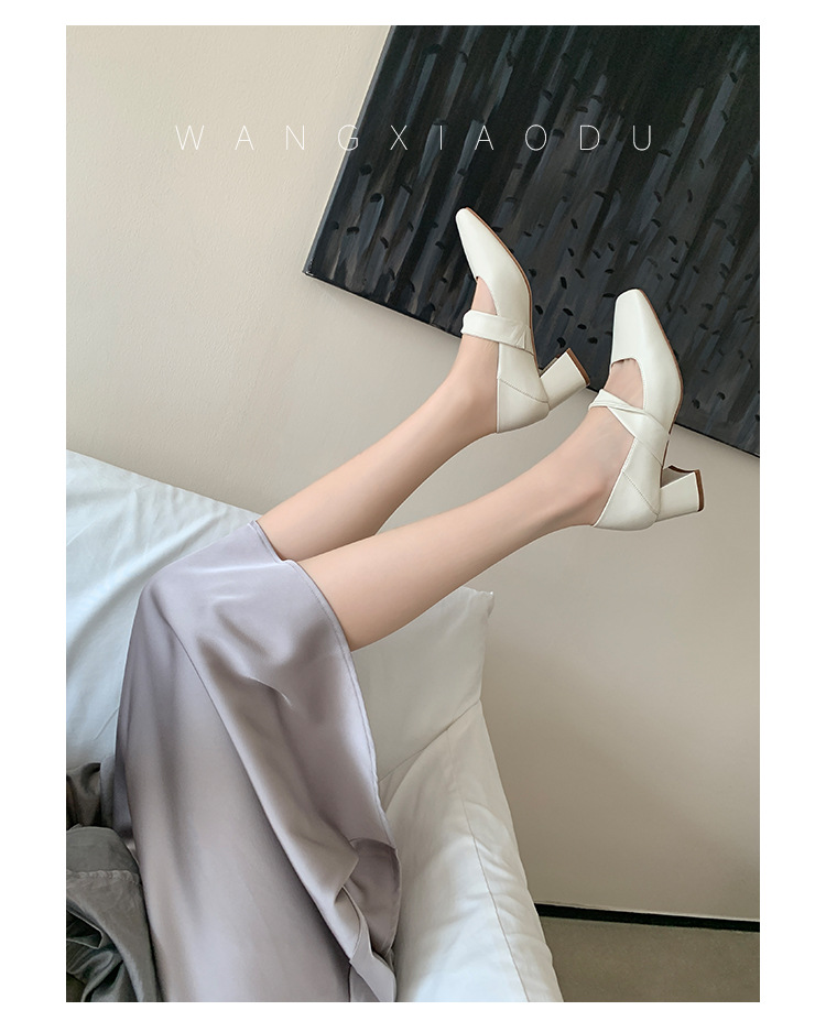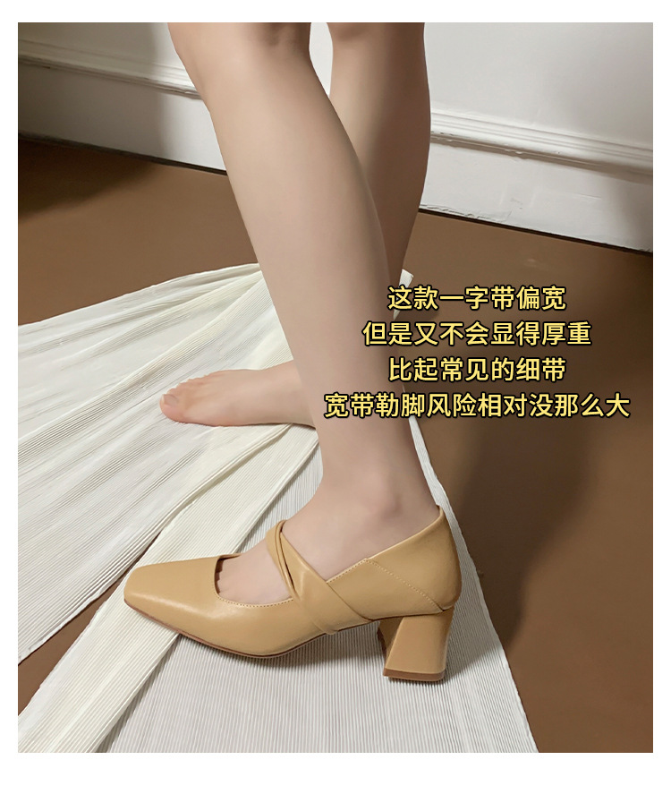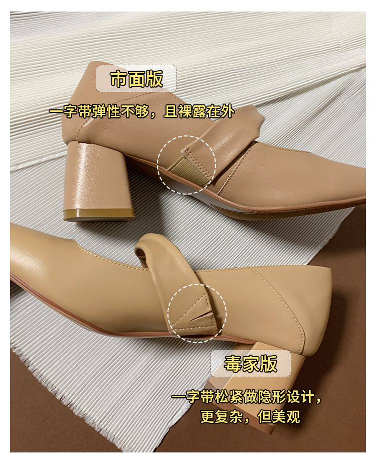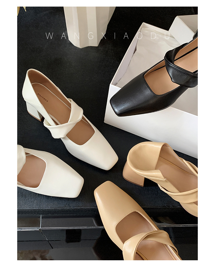 [왕샤오두] 사랑에 대한 분위기 속에서 ● 스퀘어 헤드 메리 제인 여성 신발 하이힐 두꺼운 힐링 작은 가죽 신발스토어 가기