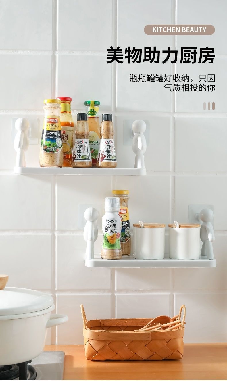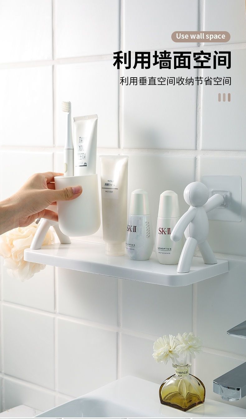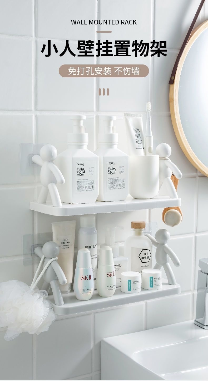 새로운 스타일의 작은 인형 간단한 벽걸이 형 펀치없는 보관 랙 빨판 보관 랙 욕실 화장품 보관 주방 전체스토어 가기