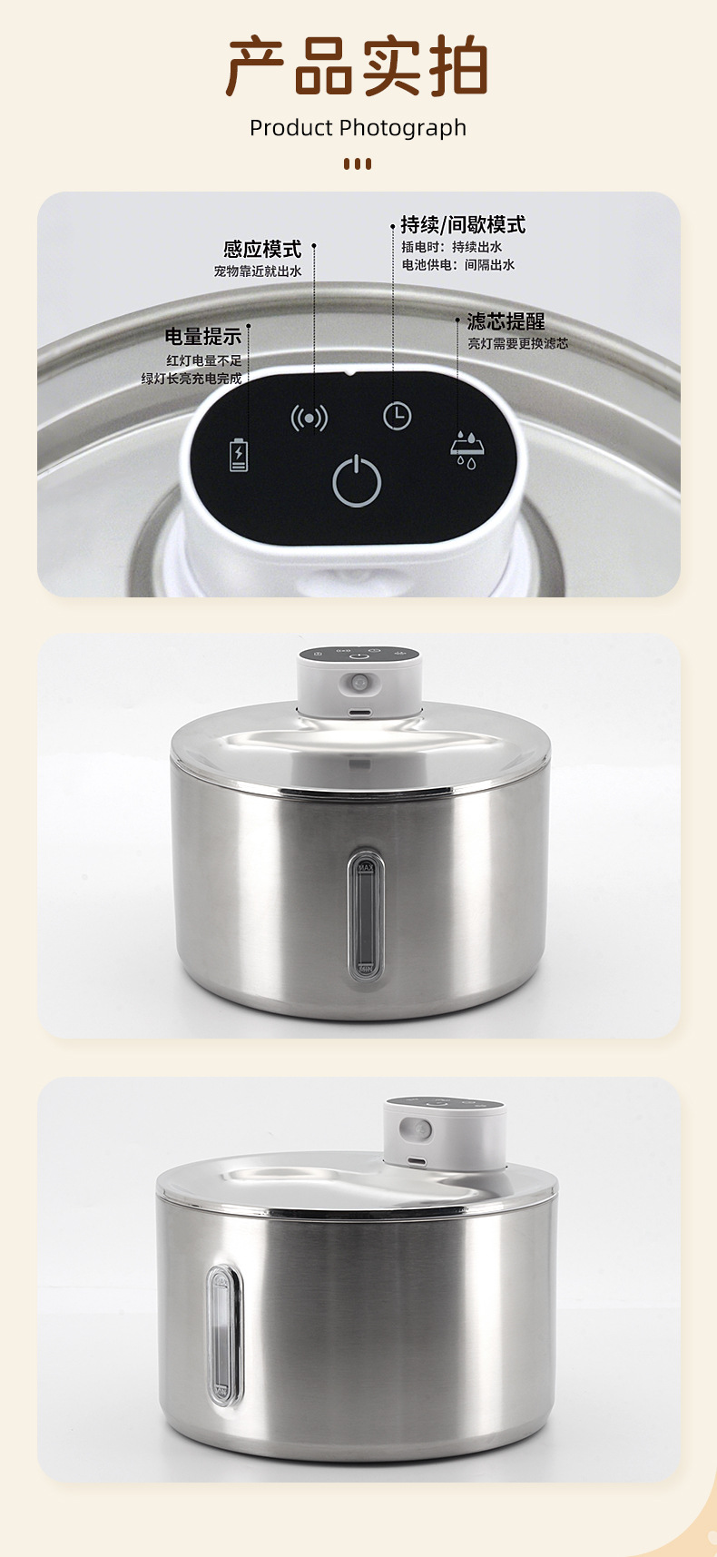 국경 간 새로운 304 스테인레스 스틸 애완 동물 물 디스펜서 자동 유도 고양이 물 디스펜서 unplugged 개 물 공급기