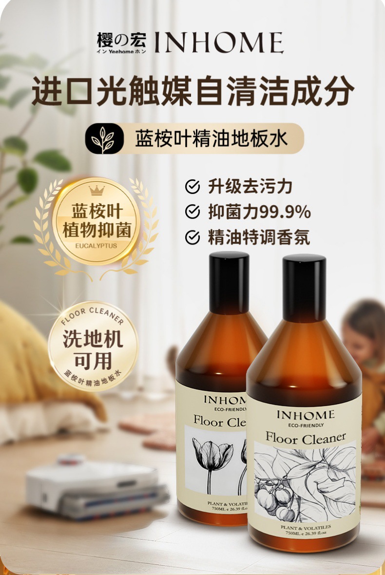 블루 유칼립투스 잎 바닥 세정제, 향기로운 물걸레, 타일 광택제, 빠른 건조, 흔적 없음, 바닥 청소기 세정액스토어 가기