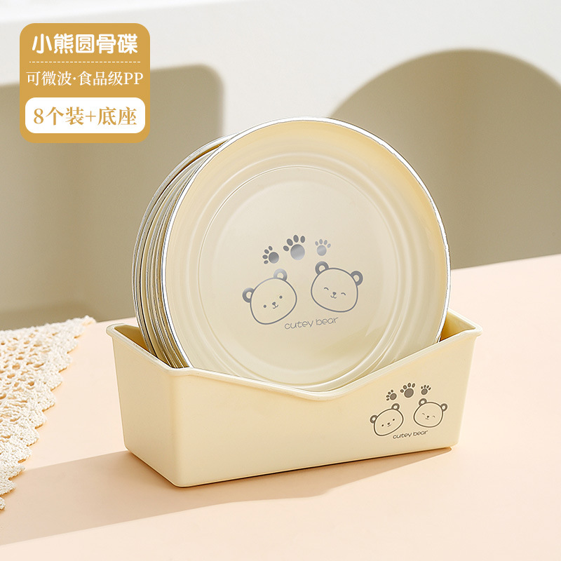 • 크림 옐로우 라운드 접시-8 팩 저장베이스