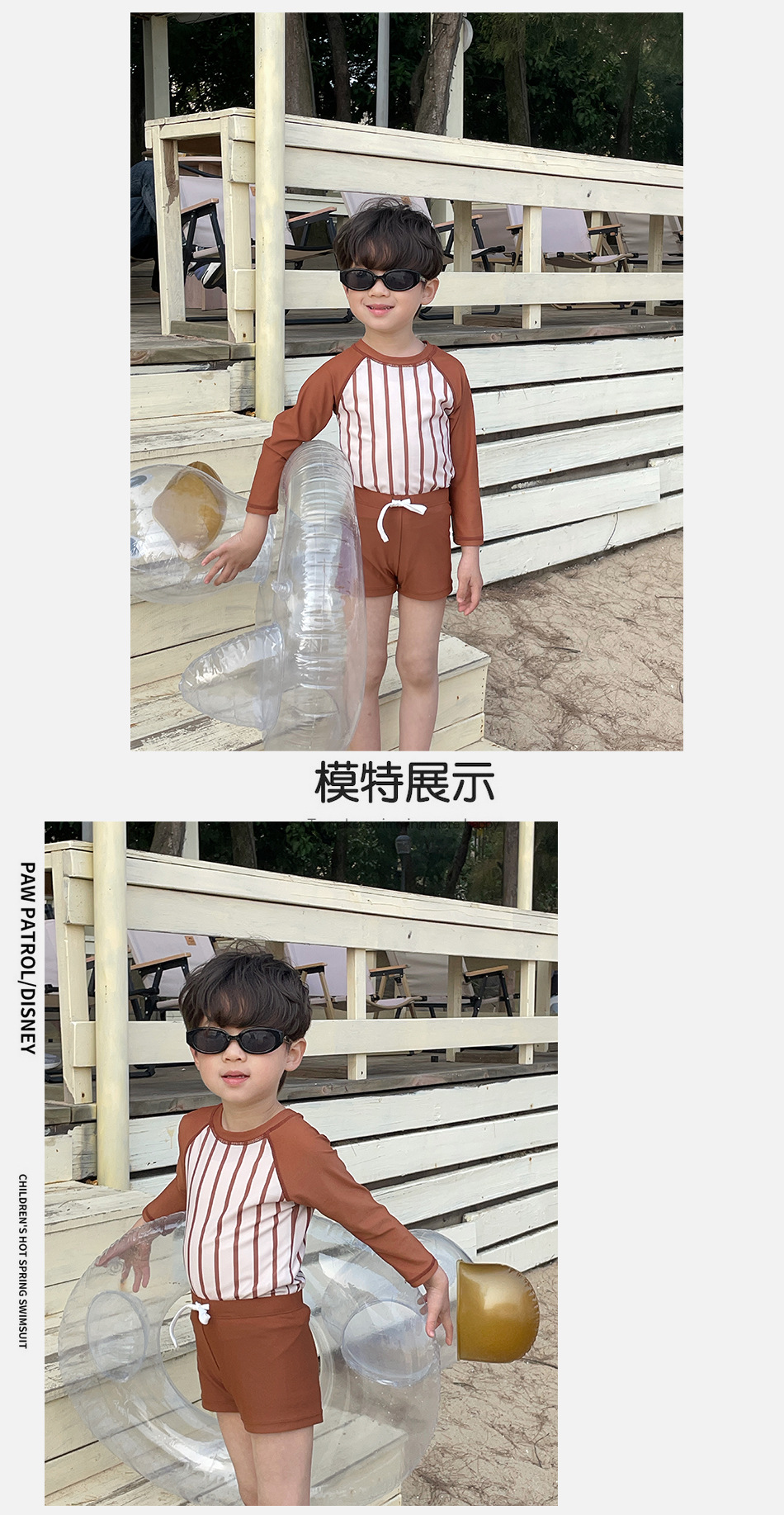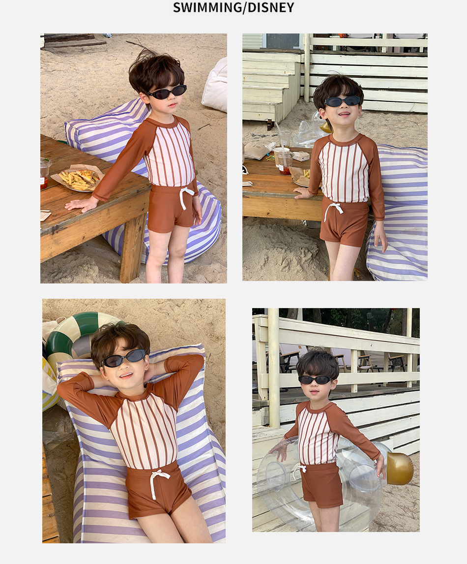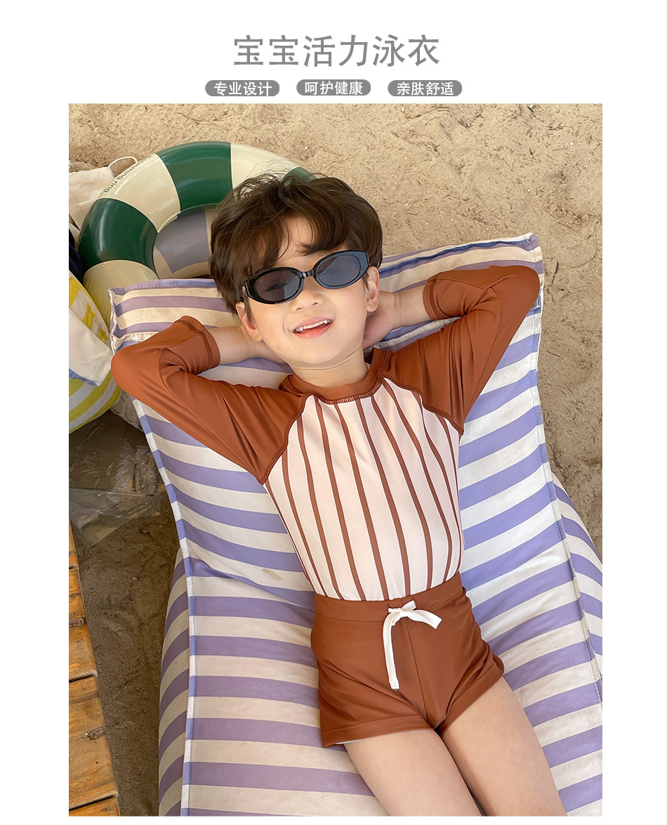 신형 어린이 수영복 중소형 어린이 소년 '한국식 3 색 3 색 긴팔 선 스크린 빠른 건조 여름 수영복