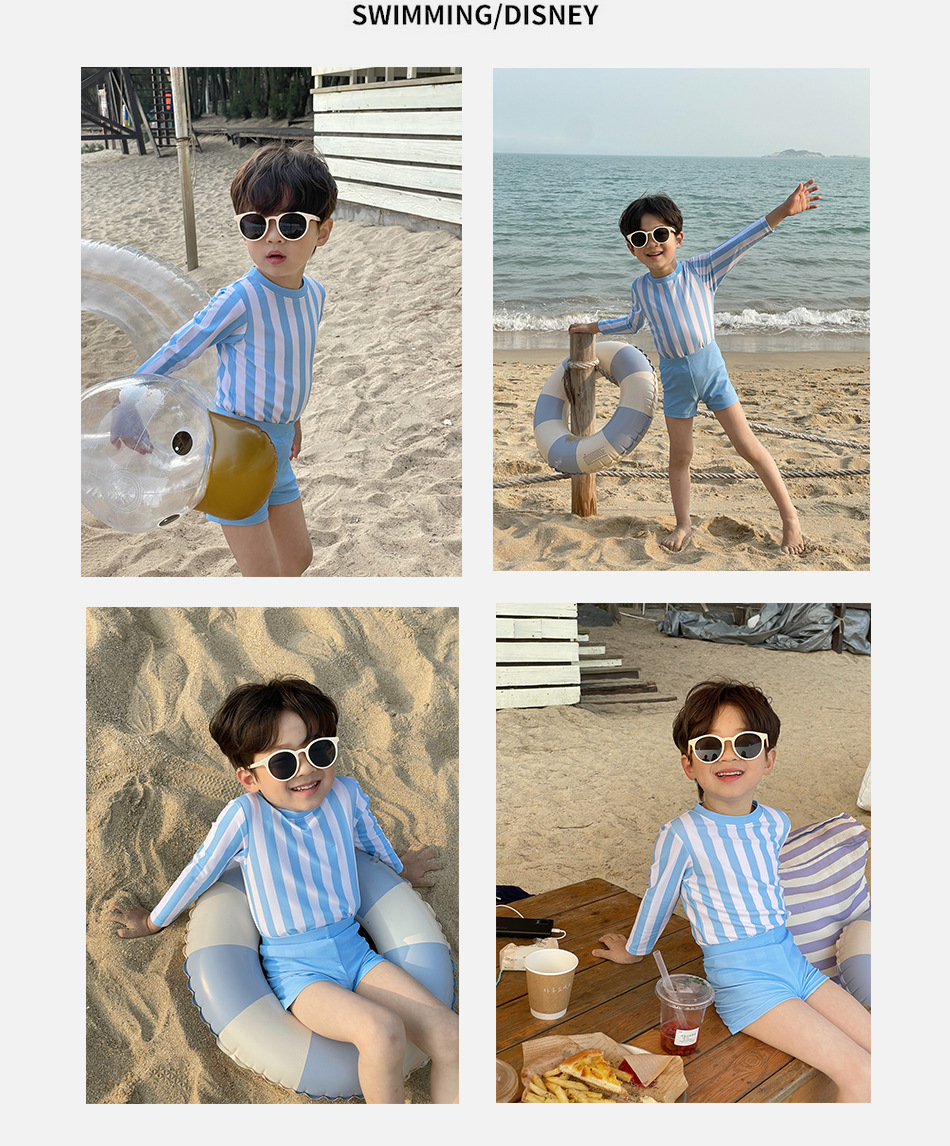 신형 어린이 수영복 중소형 어린이 소년 '한국식 3 색 3 색 긴팔 선 스크린 빠른 건조 여름 수영복스토어 가기