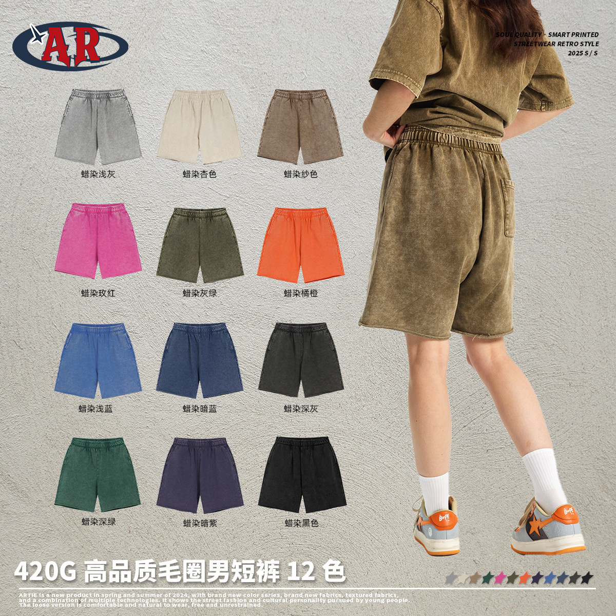 ARTIE 남성복丨2026년 인기 왁스염색 워싱 헤비웨이트 420g 빈티지 남성 반바지 유럽 및 미국 레트로 중간길이 바지스토어 가기