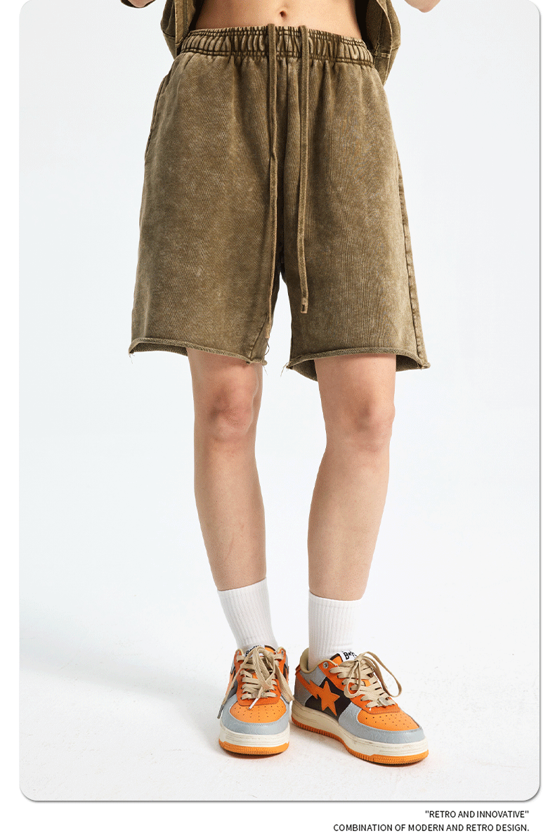 ARTIE 남성복丨2026년 인기 왁스염색 워싱 헤비웨이트 420g 빈티지 남성 반바지 유럽 및 미국 레트로 중간길이 바지