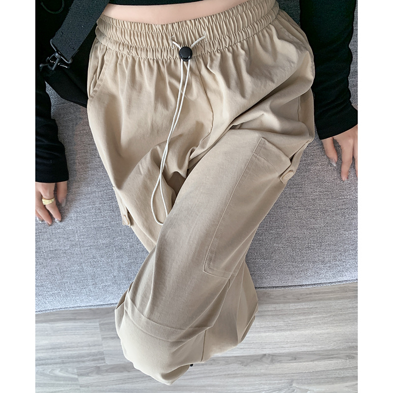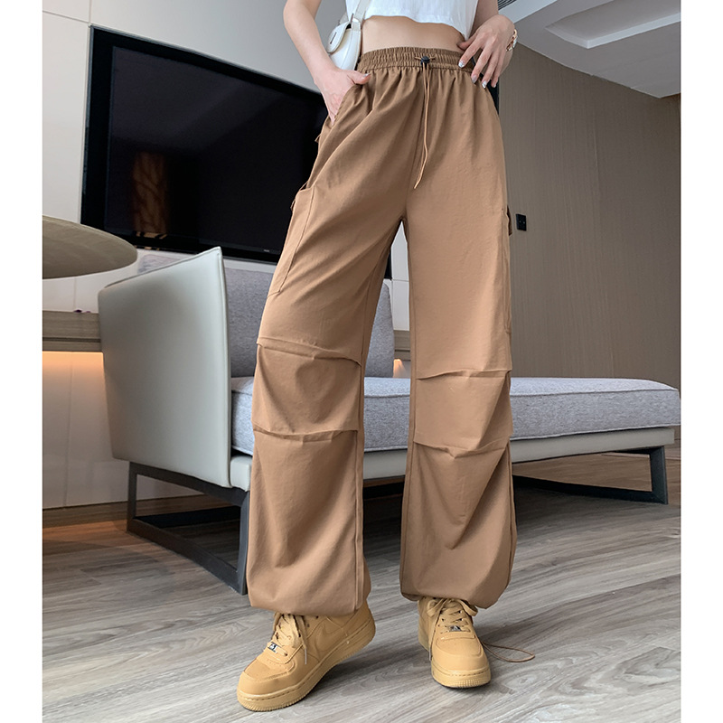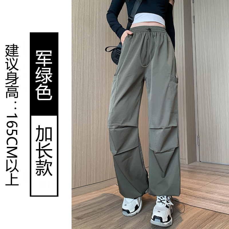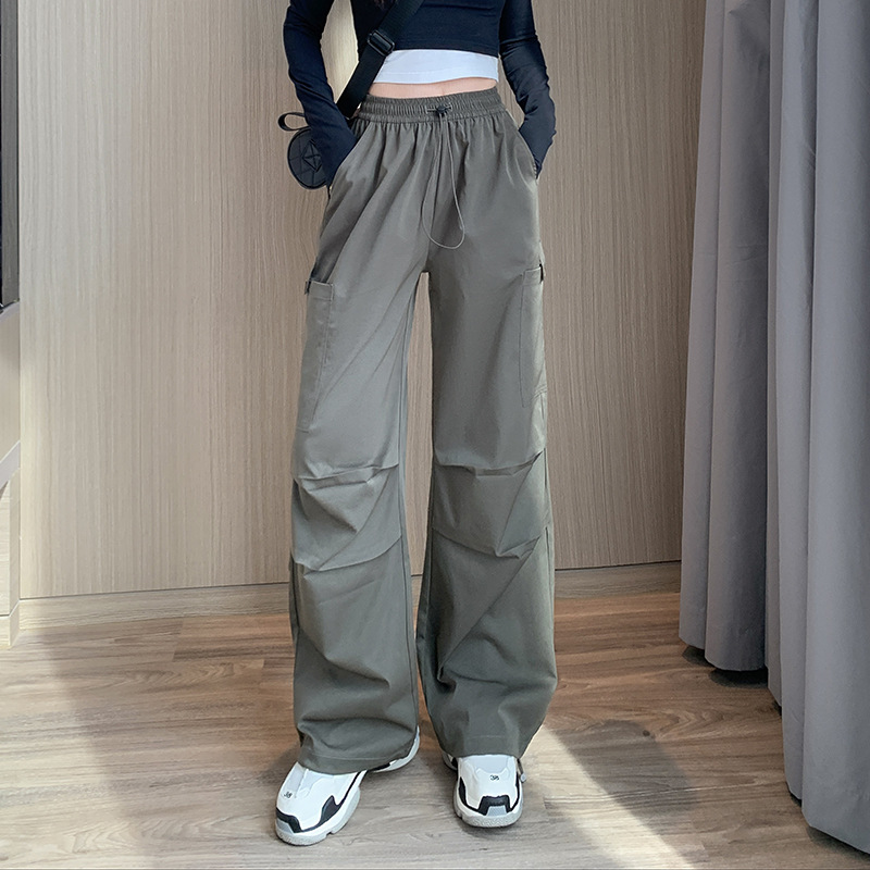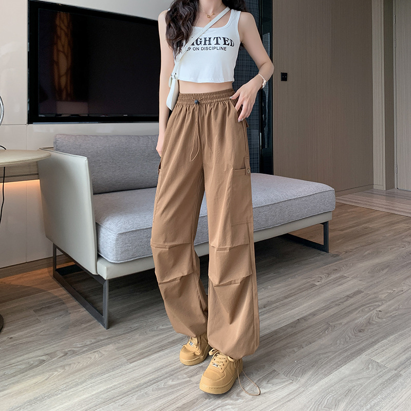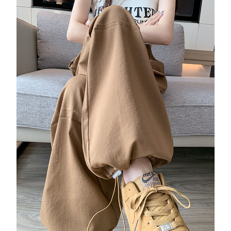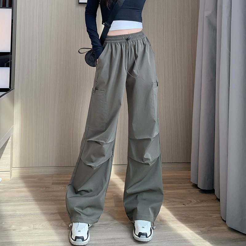 미국 바지 여성 여름 얇은 2024 새로운 높은 허리 느슨한 넓은 다리 바지 슬림 빠른 건조 스포츠 바지스토어 가기