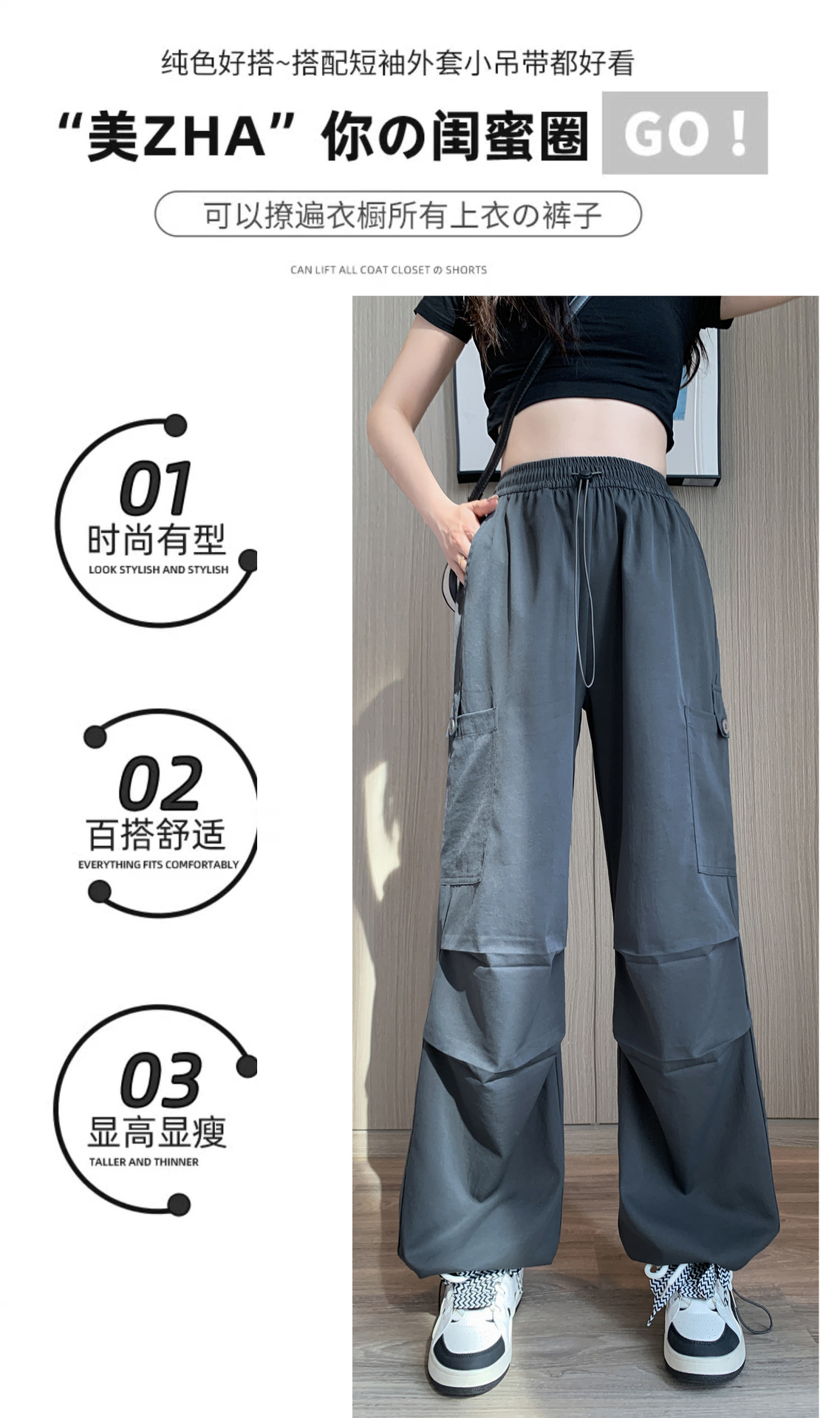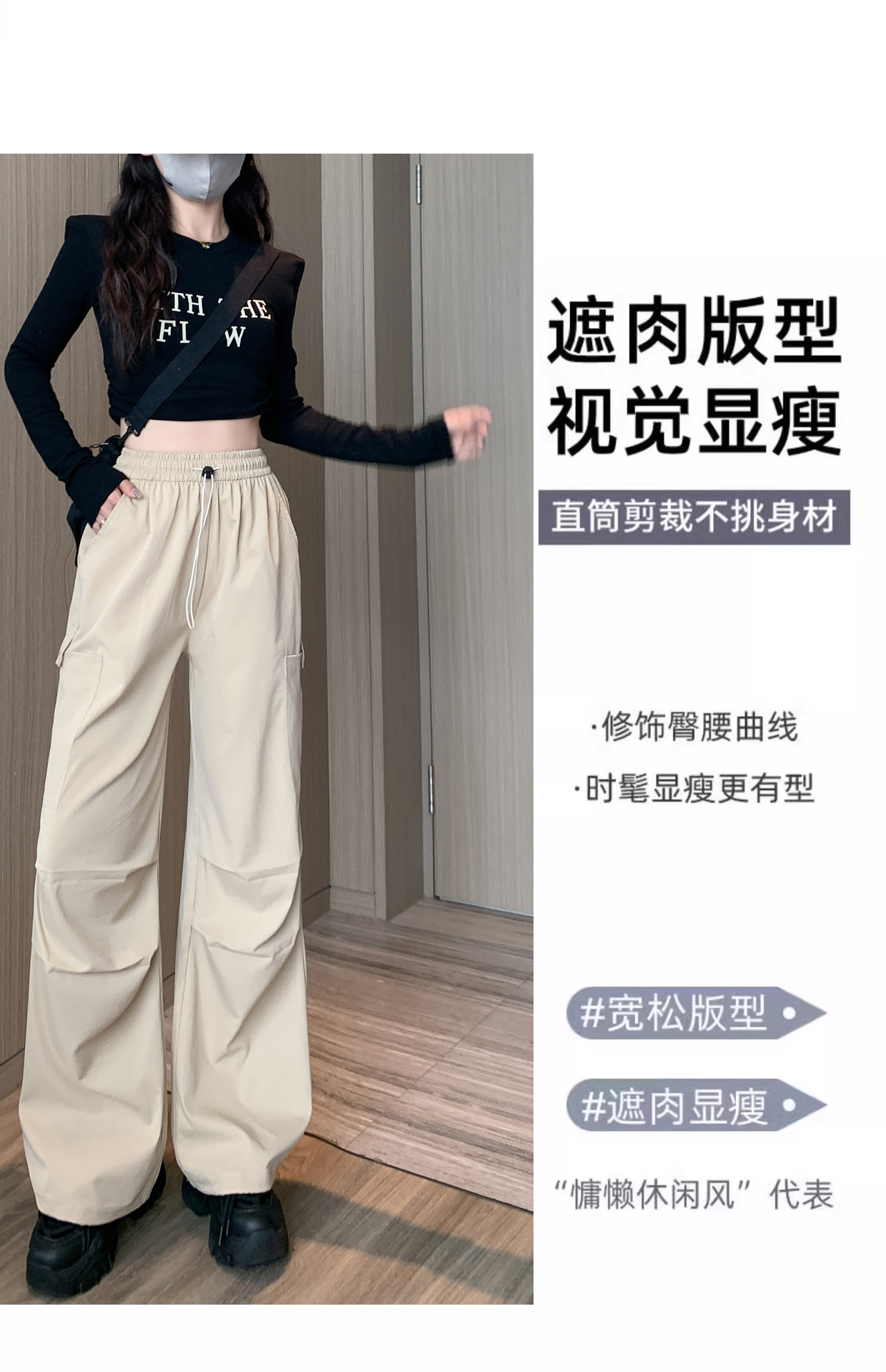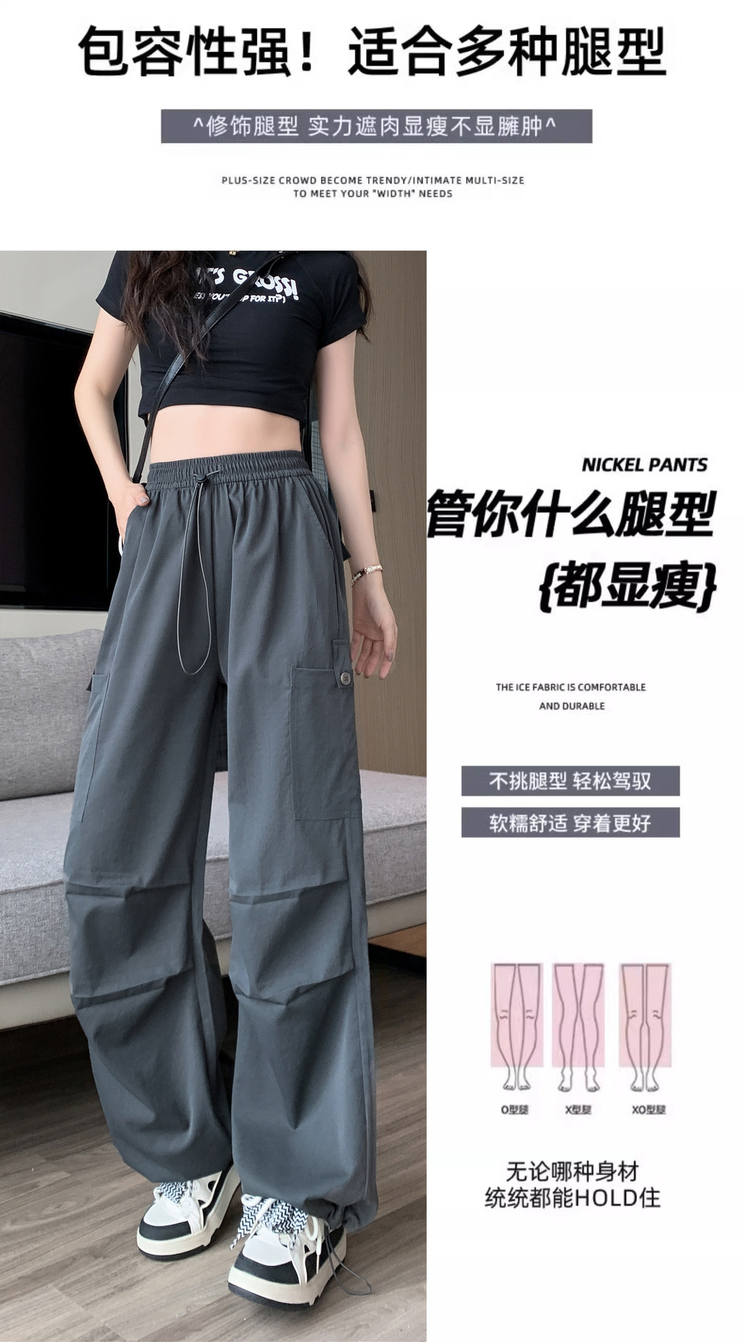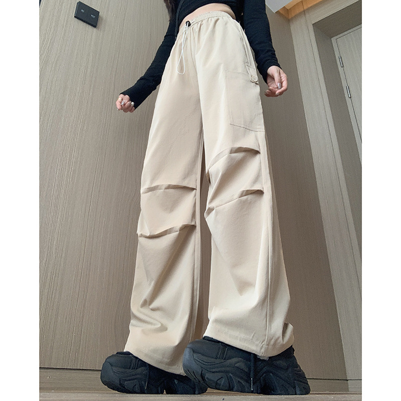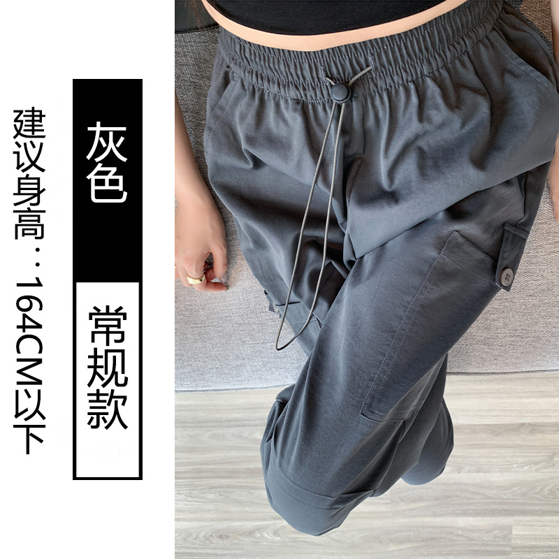 미국 바지 여성 여름 얇은 2024 새로운 높은 허리 느슨한 넓은 다리 바지 슬림 빠른 건조 스포츠 바지스토어 가기