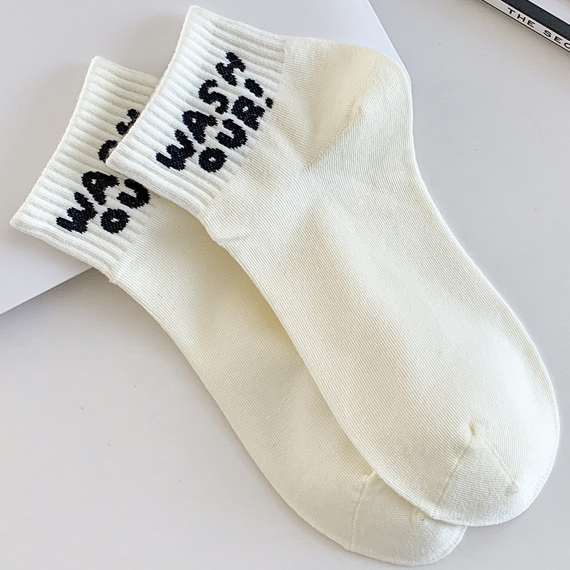 화이트 양말 여성 여름 얇은 순수 면 여성 양말 캐주얼 올 매치 스트라이프 레터 트렌디 인터넷 연예인 스포츠 양말
