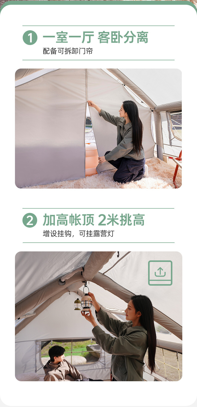 나는 3~4인용 야외 풍선 텐트 캠핑을 하고 있습니다. 완전 자동 대형 공간 2실 1거실 캠핑 야간 방수 텐트스토어 가기