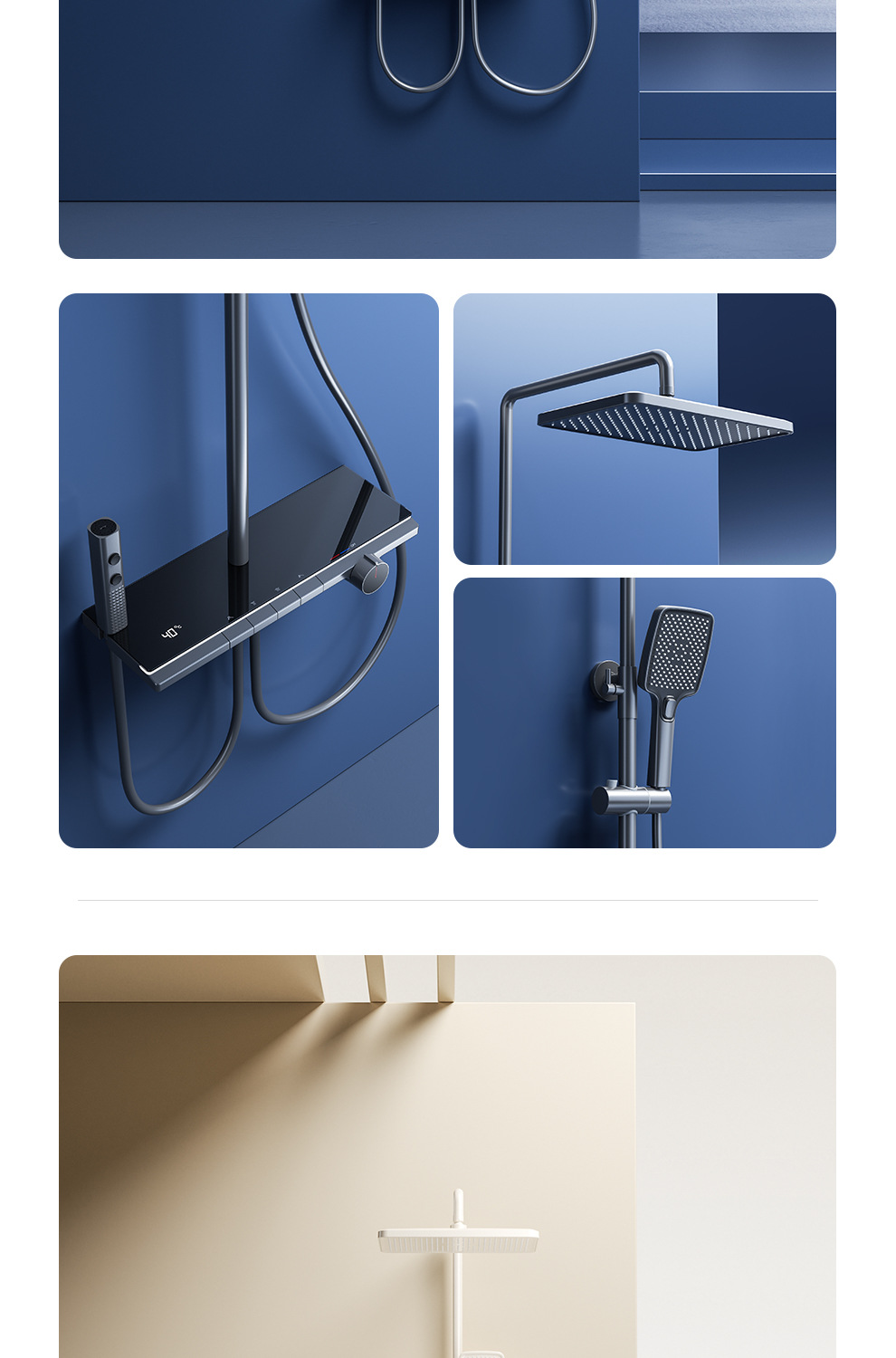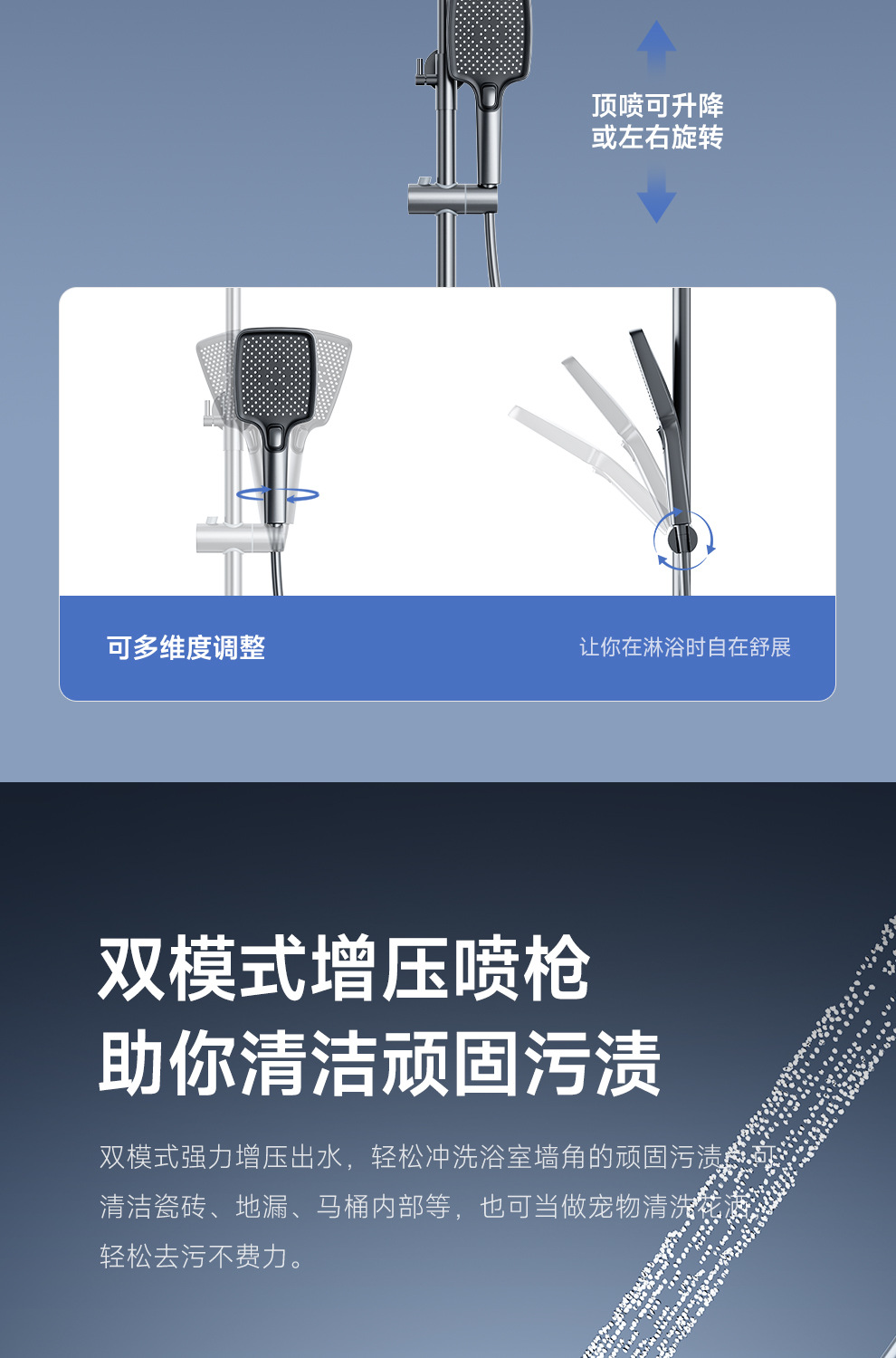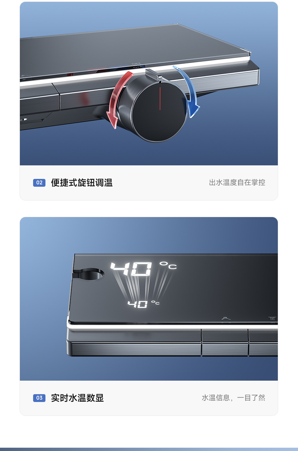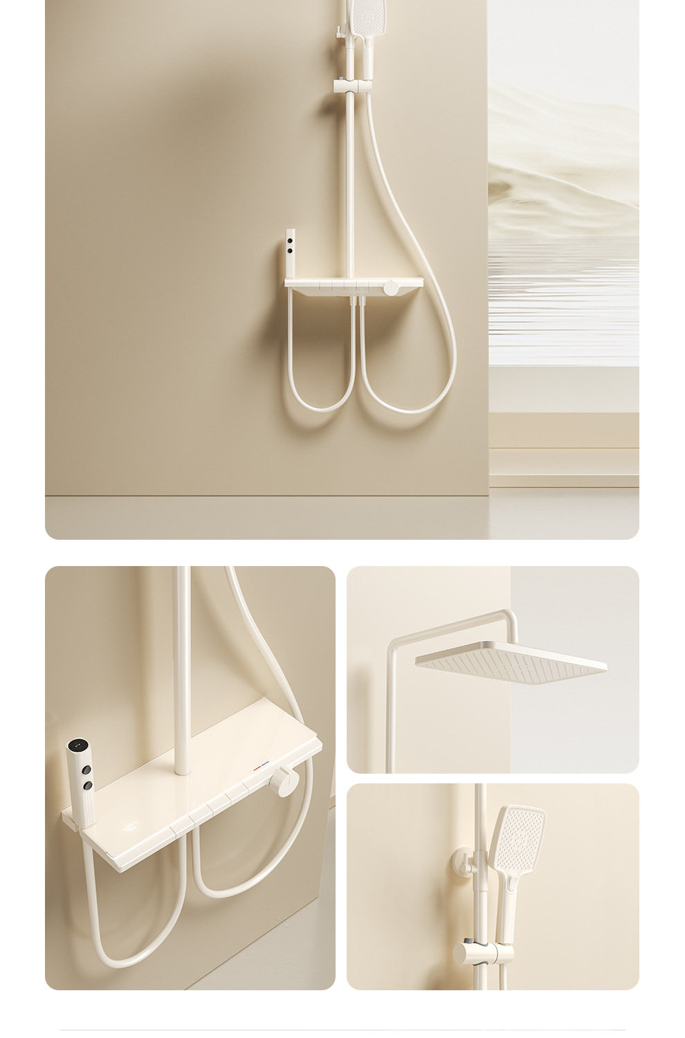 전동식 온도조절 기능이 있는 풀 코퍼 샤워기 세트, 고압 샤워헤드, 풀 코퍼 스마트 디지털 디스플레이, 건메탈 색상, 피아노 버튼 샤워기스토어 가기
