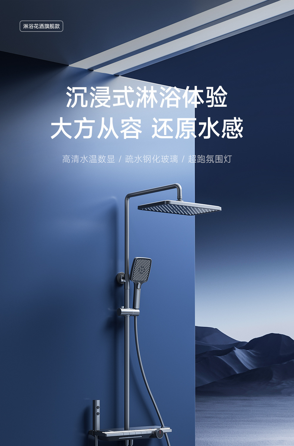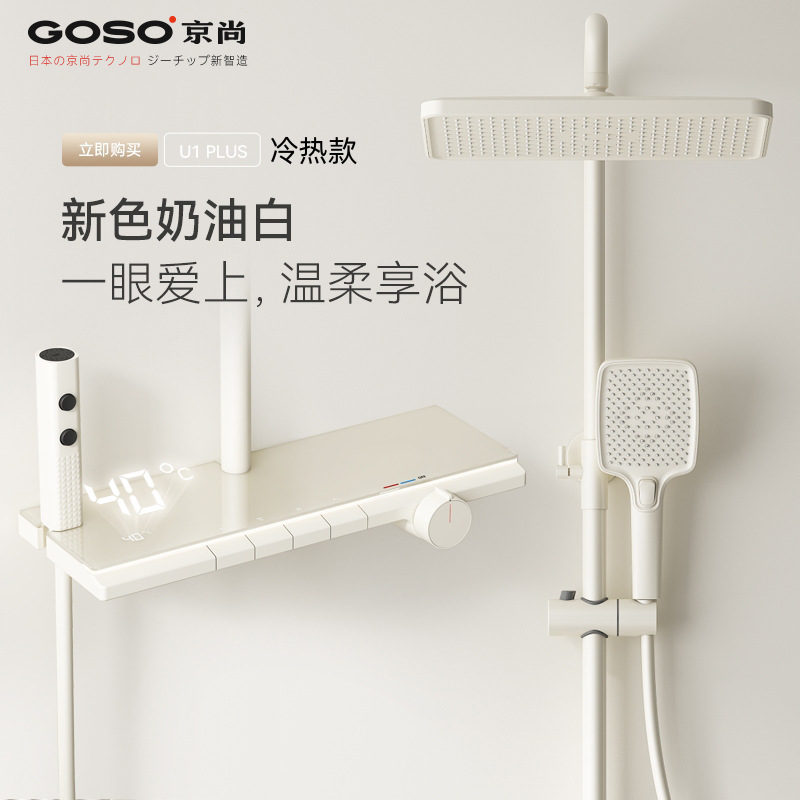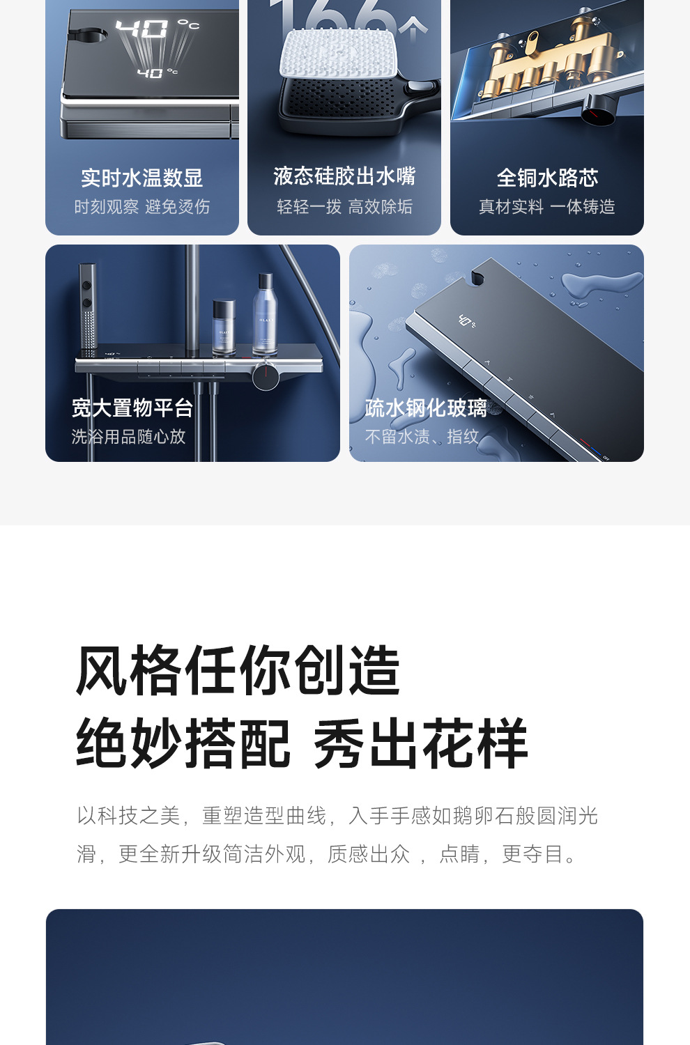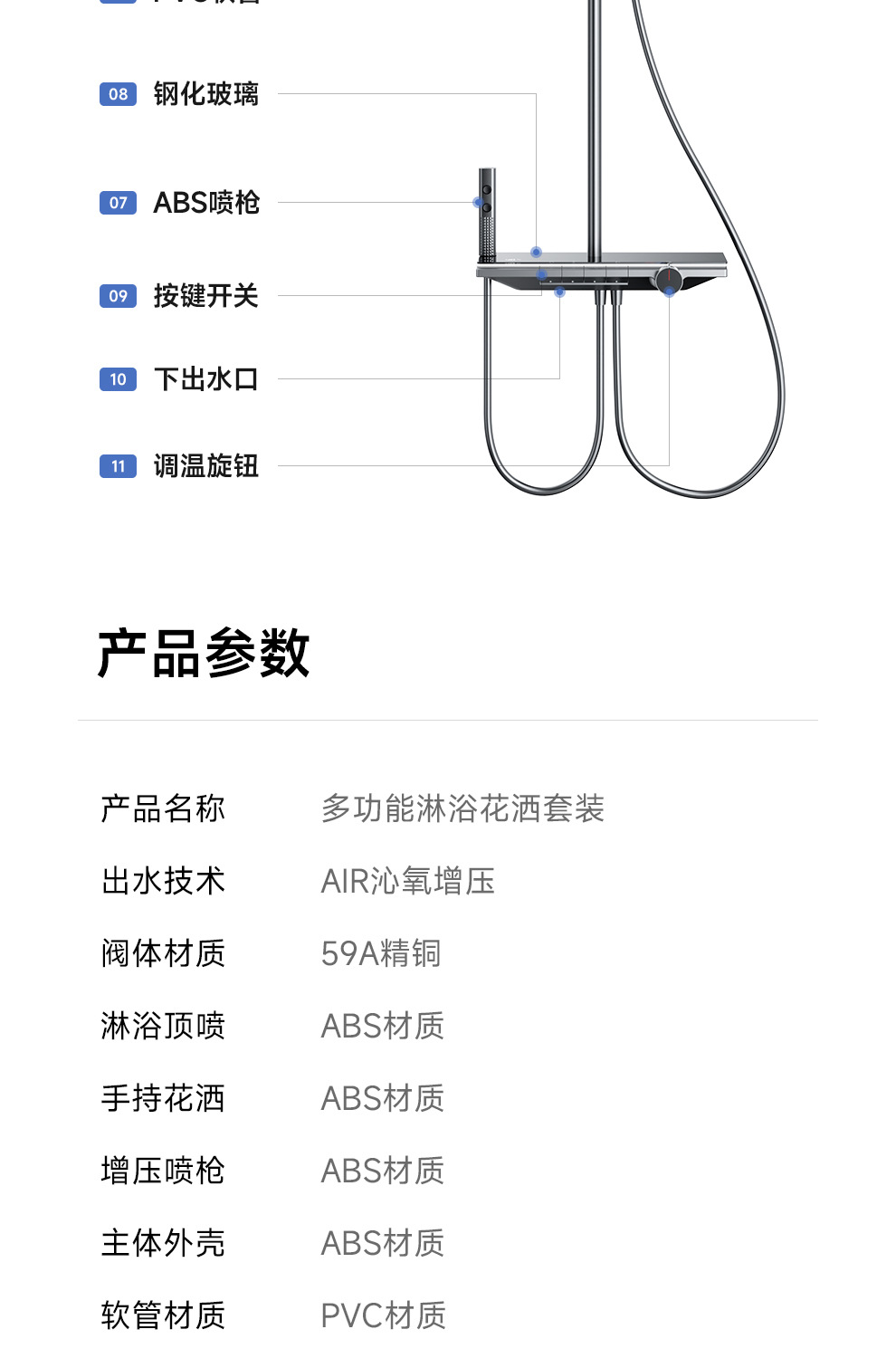 전동식 온도조절 기능이 있는 풀 코퍼 샤워기 세트, 고압 샤워헤드, 풀 코퍼 스마트 디지털 디스플레이, 건메탈 색상, 피아노 버튼 샤워기스토어 가기
