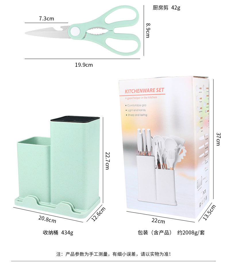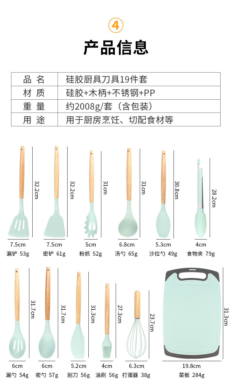 나무 손잡이 실리콘 주방용품 19 조각 저장 배럴 도구 조합 세트 공장 재고를 가진 비 스틱 요리 삽 세트