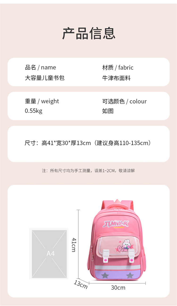 초등학교 스쿨 백 1, 2, 3 ~ 6 학년 소년 소녀 척추-대용량 배낭 감소