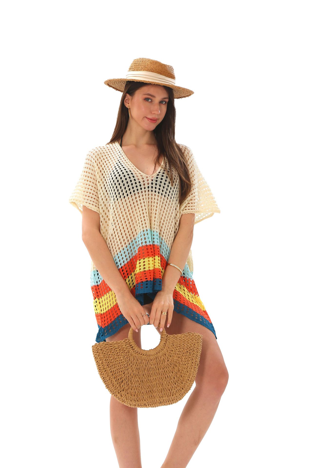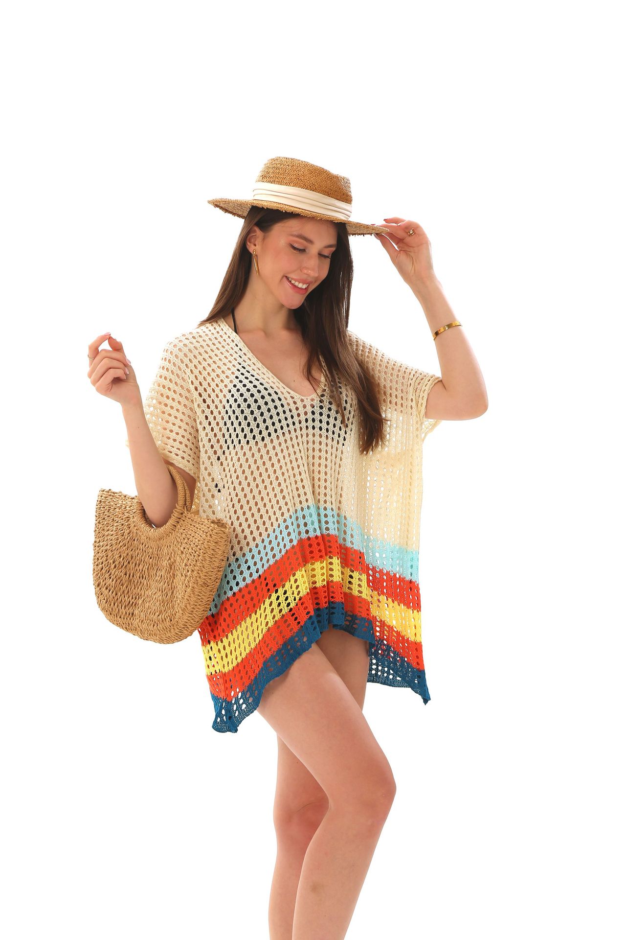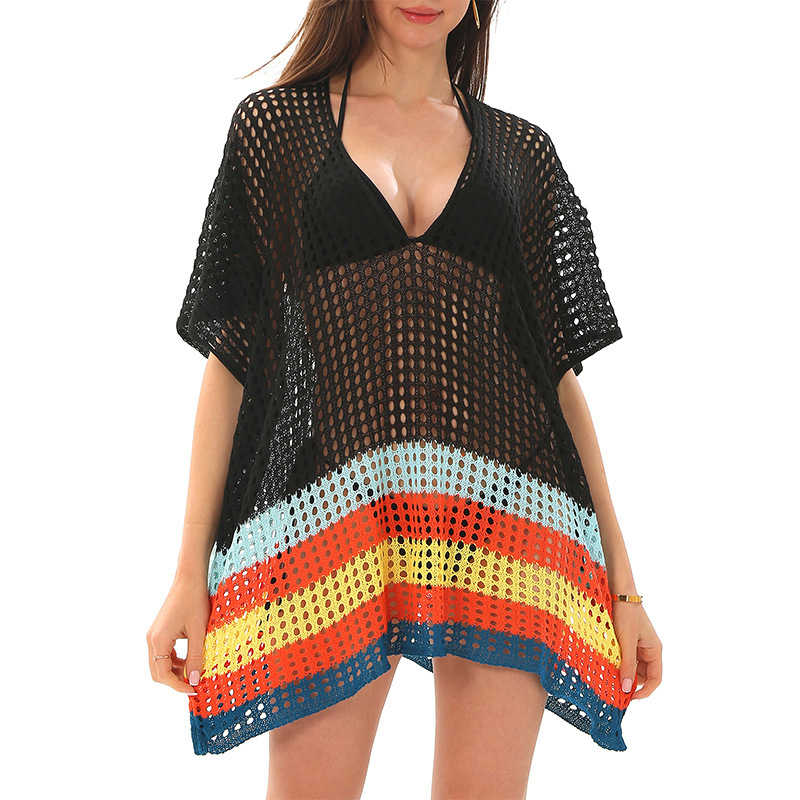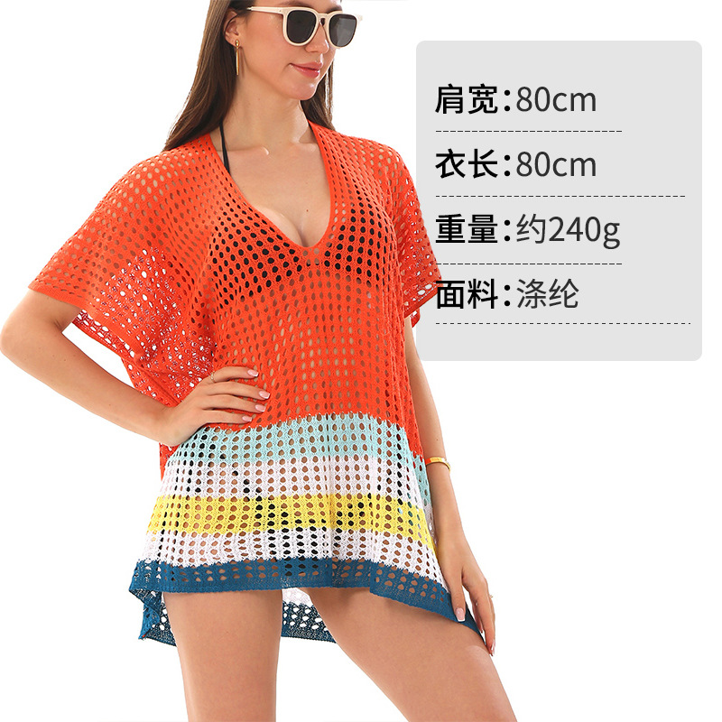 새로운 비치 블라우스 바닥 줄무늬 니트 자외선 차단제 블라우스 유럽과 미국의 섹시한 비키니 블라우스 국경 도매스토어 가기